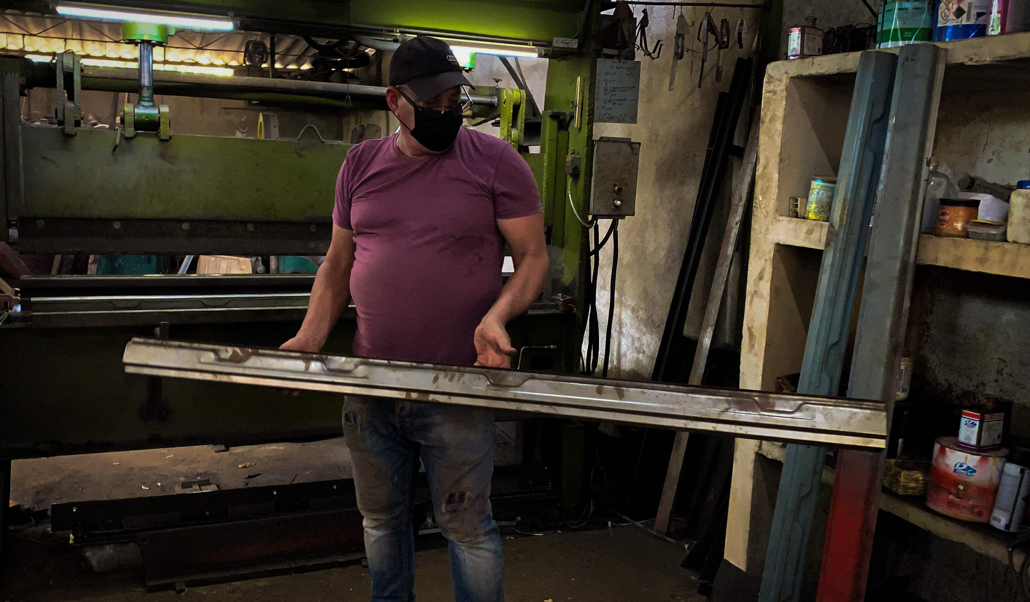 A su lado trabaja ahora una aprendiz, Lemaydi Madrigal, de 32 años, que lleva las grandes planchas de metal de una máquina a otra para darles la forma deseada. “Prácticamente no sabía casi nada sobre carros” al empezar, recuerda.