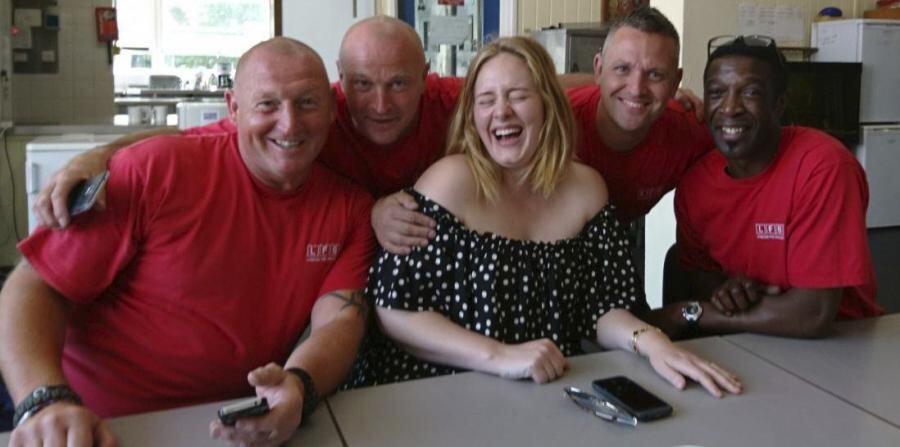 En las fotos, compartidas en Twitter, se ve a la cantante posando con los bomberos ante un camión en el parque de Chelsea. Adele también se tomó una taza de té con ellos el lunes y les dio las gracias por sus esfuerzos combatiendo las llamas en la torre Grenfell, de 24 pisos.