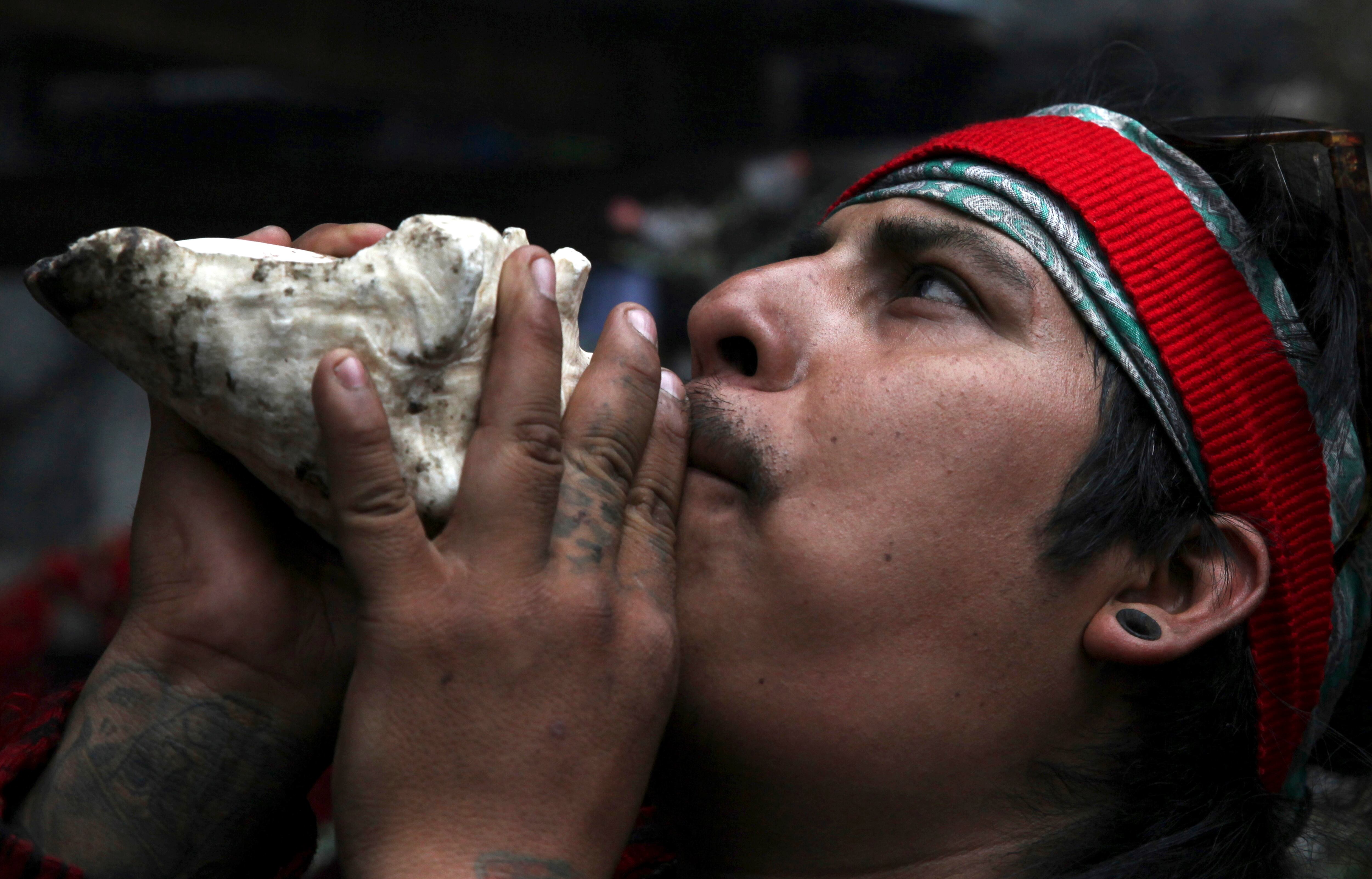 Debajo de una pequeña cascada en las laderas de Iztaccíhuatl, colocan ofrendas sobre un altar. Hay papayas y sandías talladas en forma de flores, tazas de pulque lechoso _una bebida alcohólica elaborada a partir de la savia fermentada de la planta de maguey_ mazorcas de maíz, incienso y velas.