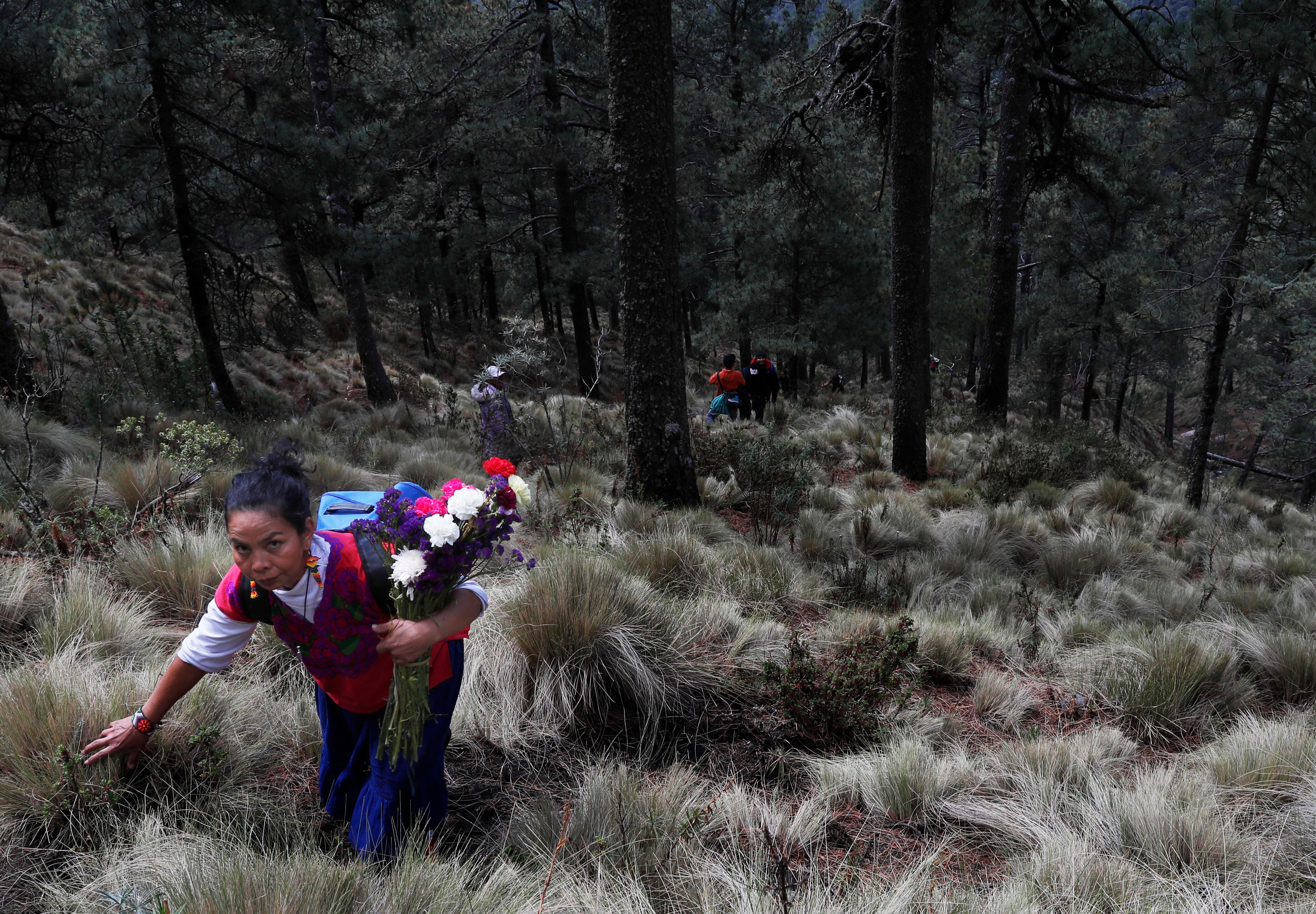 Los habitantes de Santiago Xalitzintla se levantan mucho antes del amanecer para preparar las ofrendas que llevarán a la Mujer Dormida, como llaman cariñosamente al volcán inactivo Iztaccíhuatl que se alza sobre esta localidad en el centro de México.
