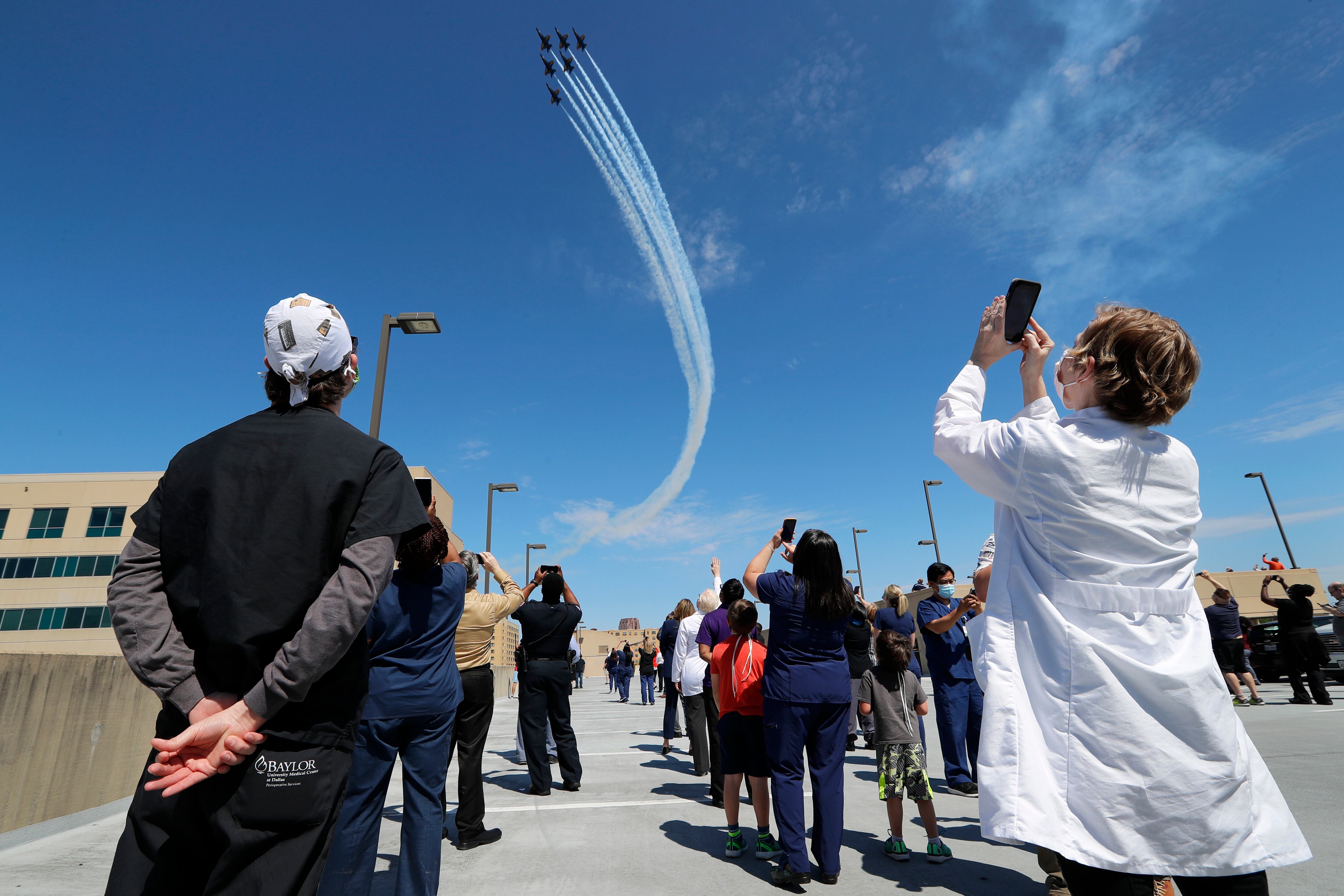“Me enorgullece asociarme con la Armada para llevar a los Blue Angels a mostrar el profundo agradecimiento de nuestra comunidad a los valientes médicos, enfermeras, personal de primeros auxilios y trabajadores esenciales en la primera línea de la lucha de nuestra nación contra el coronavirus”, dijo Kay Granger, representante del escuadrón, en un comunicado en su página web.