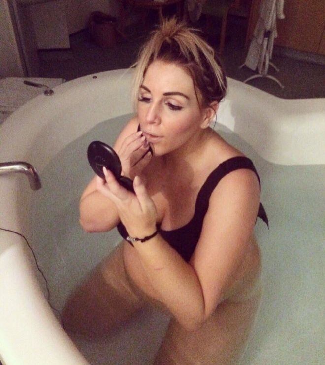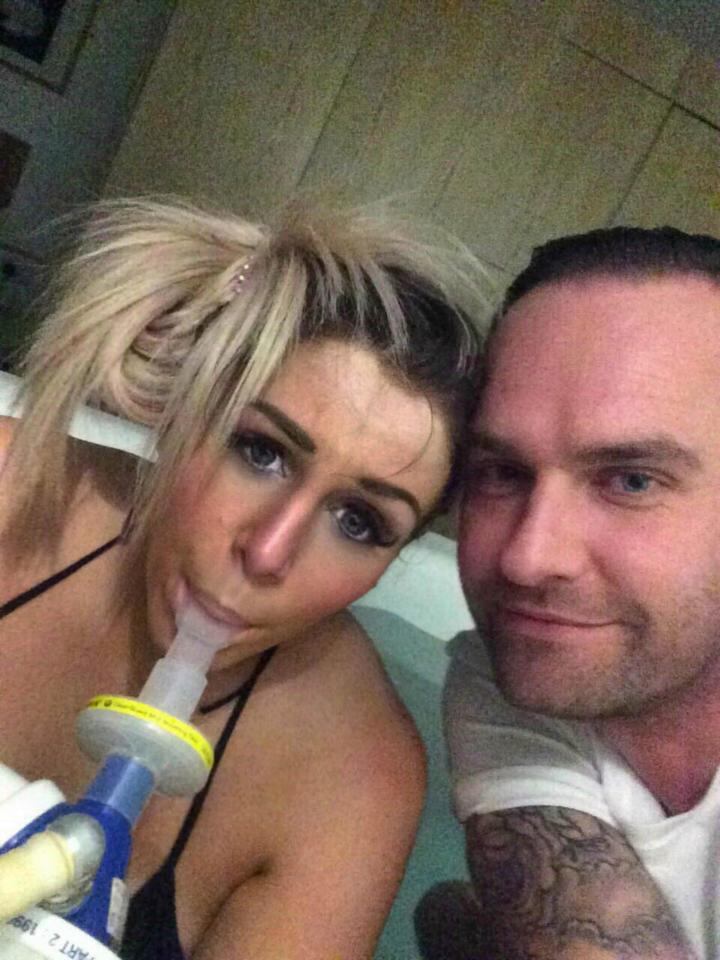 Pese a los dolores, le pidió a su pareja Beau que le pasara la cosmetiquera y estando sentada en una piscina de parto de lo más normal, comenzó a maquillarse.