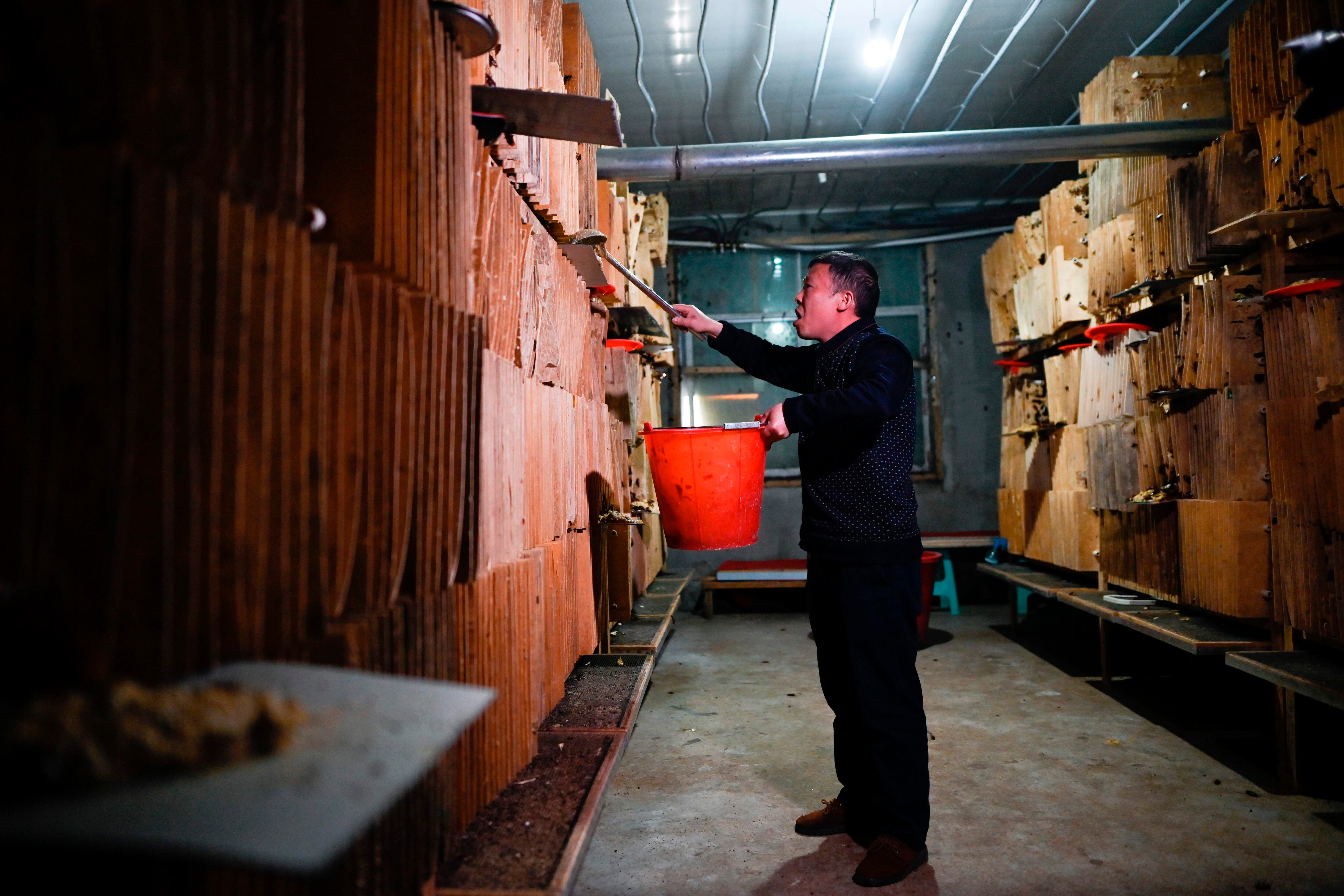 Li Bingcai, agricultor de la provincia de Sichuan, cuida a sus criaturas de seis patas. Las alimenta a diario y viven en placas de madera verticales.
