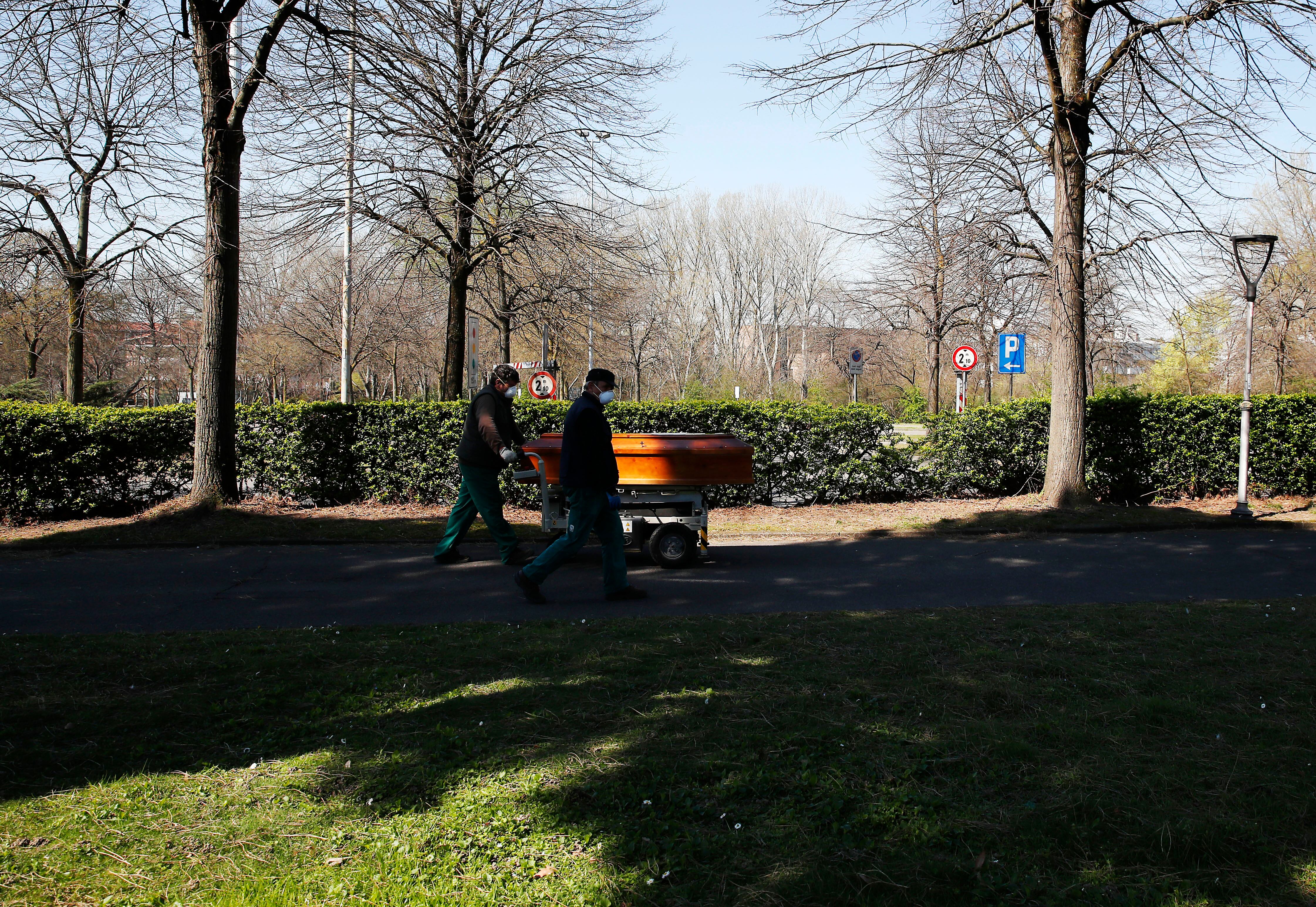 En España, donde la cifra de muertos casi alcanza los 12.000, una pista de patinaje sobre hielo en Madrid fue convertida en una morgue improvisada después que la funeraria municipal dijo que no podía recibir más cuerpos si no le enviaban equipo protector. En Italia, cuerpos embalsamados colocados en ataúdes aguardan el entierro o la cremación en naves de iglesias y depósitos.