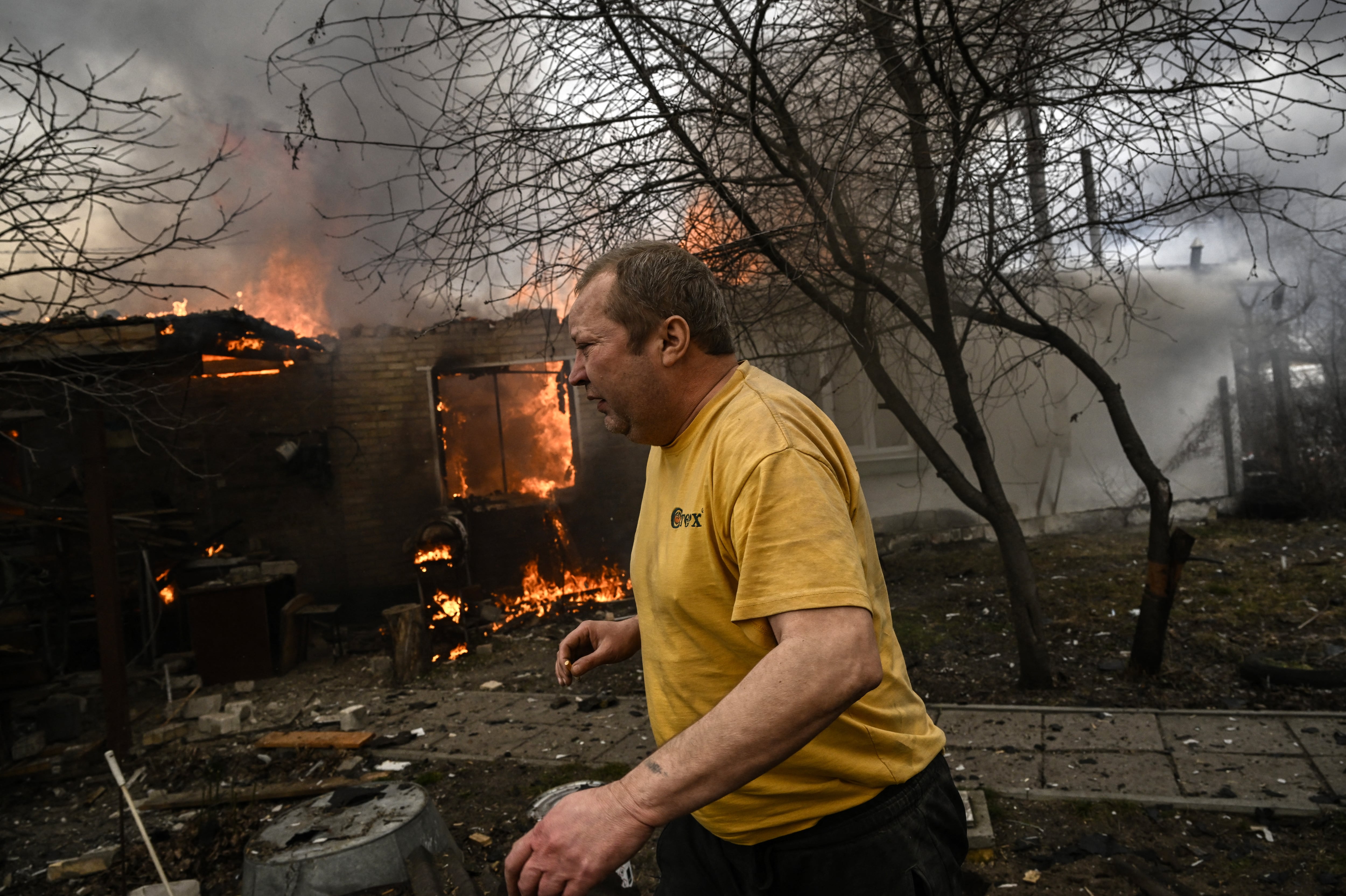 Cuando Yevghen Sboromyrskiy vio su casa ardiendo después de un bombardeo ruso en las afueras de Kiev, capital de Ucrania, se puso a temblar tanto que no pudo ni llevarse un cigarro a la boca.