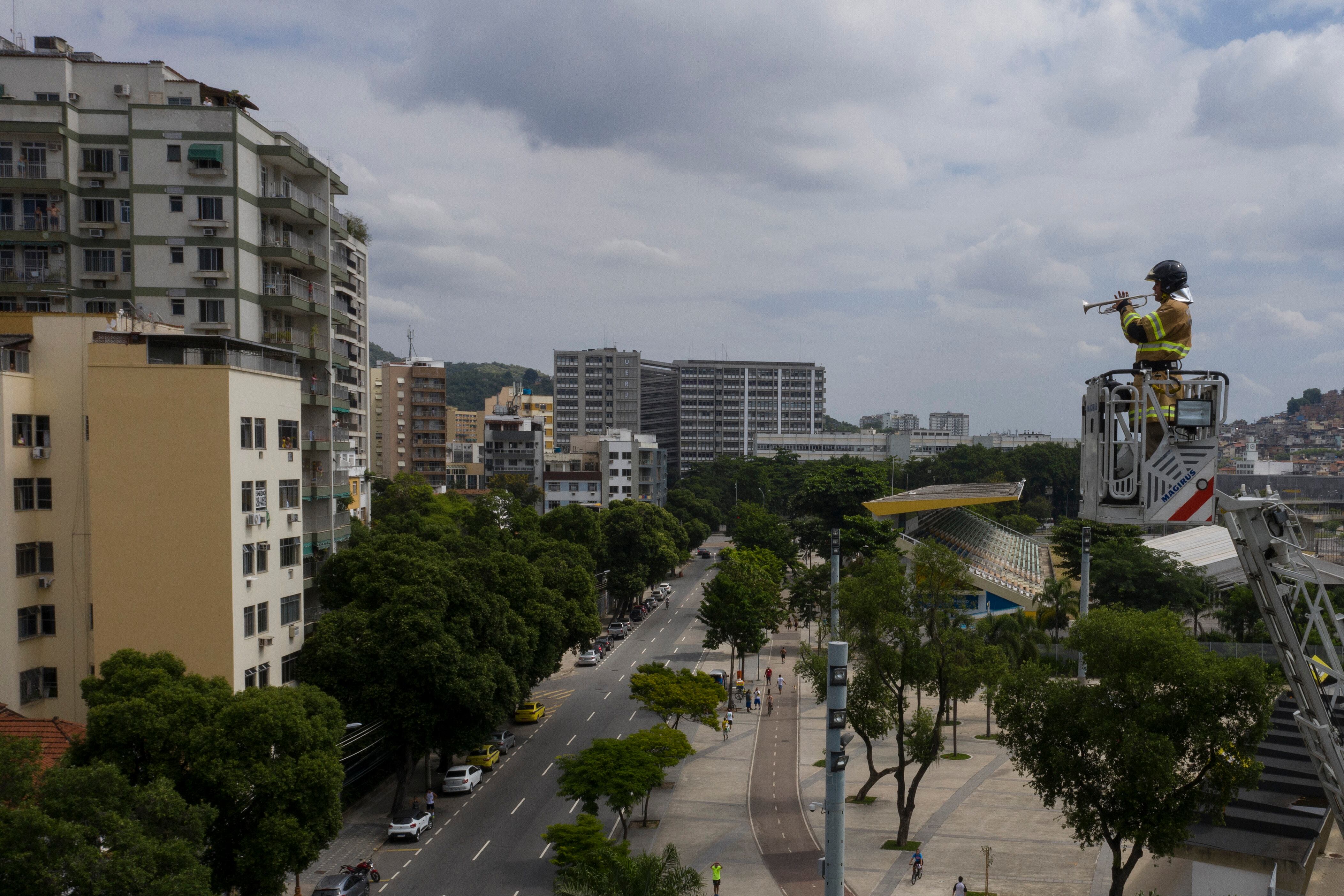 “Todos sufren con la pandemia. Yo trato de levantarle la moral a la población de Río, de aliviar los pesares de estos tiempos que vivimos”, dice Silva, quien lleva 18 años trabajando con el departamento de bomberos de la ciudad.