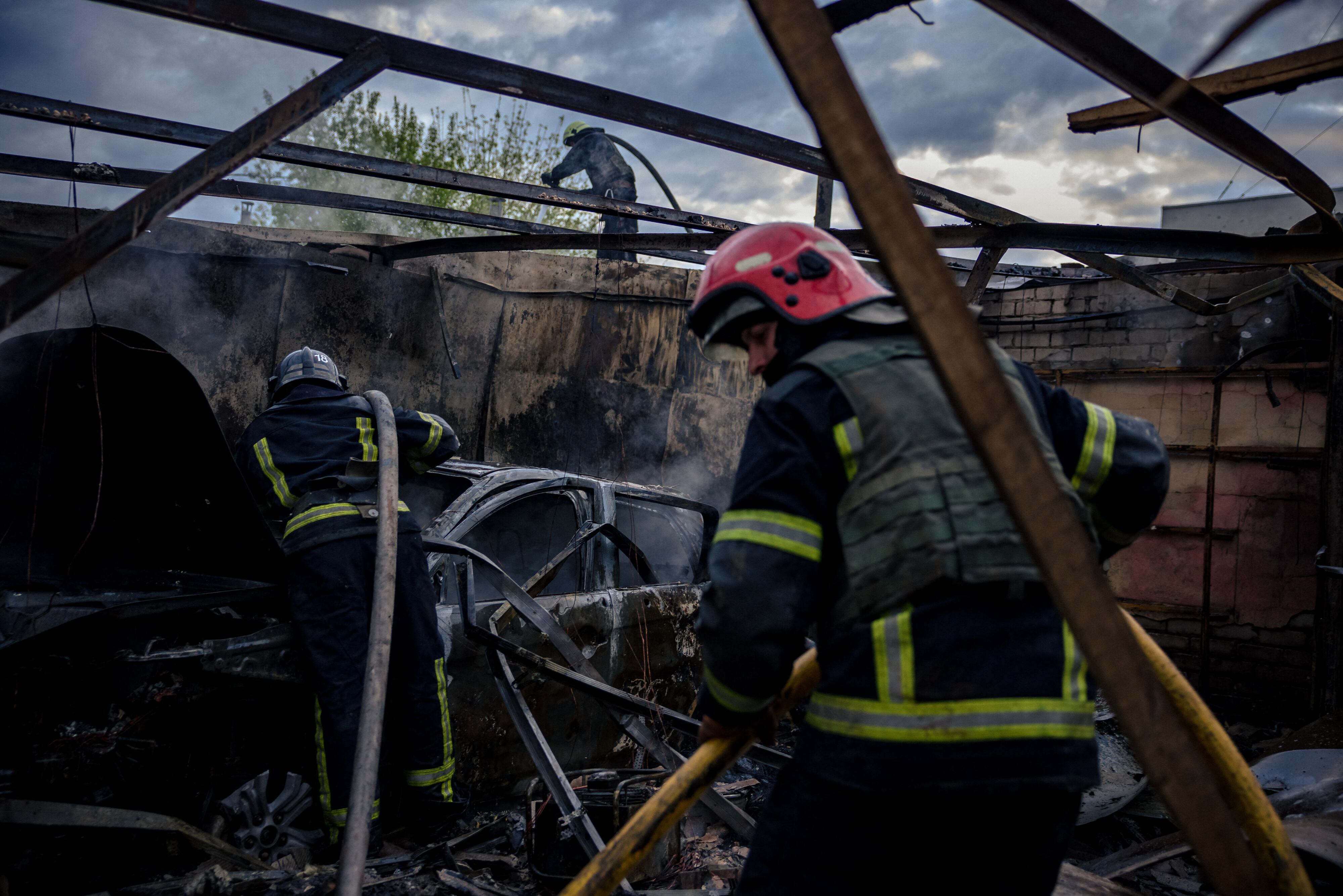Todos los días recorren Járkov para apagar incendios causados por los bombardeos rusos. Después de más de dos meses de conflicto, los bomberos de la segunda ciudad de Ucrania están agotados.