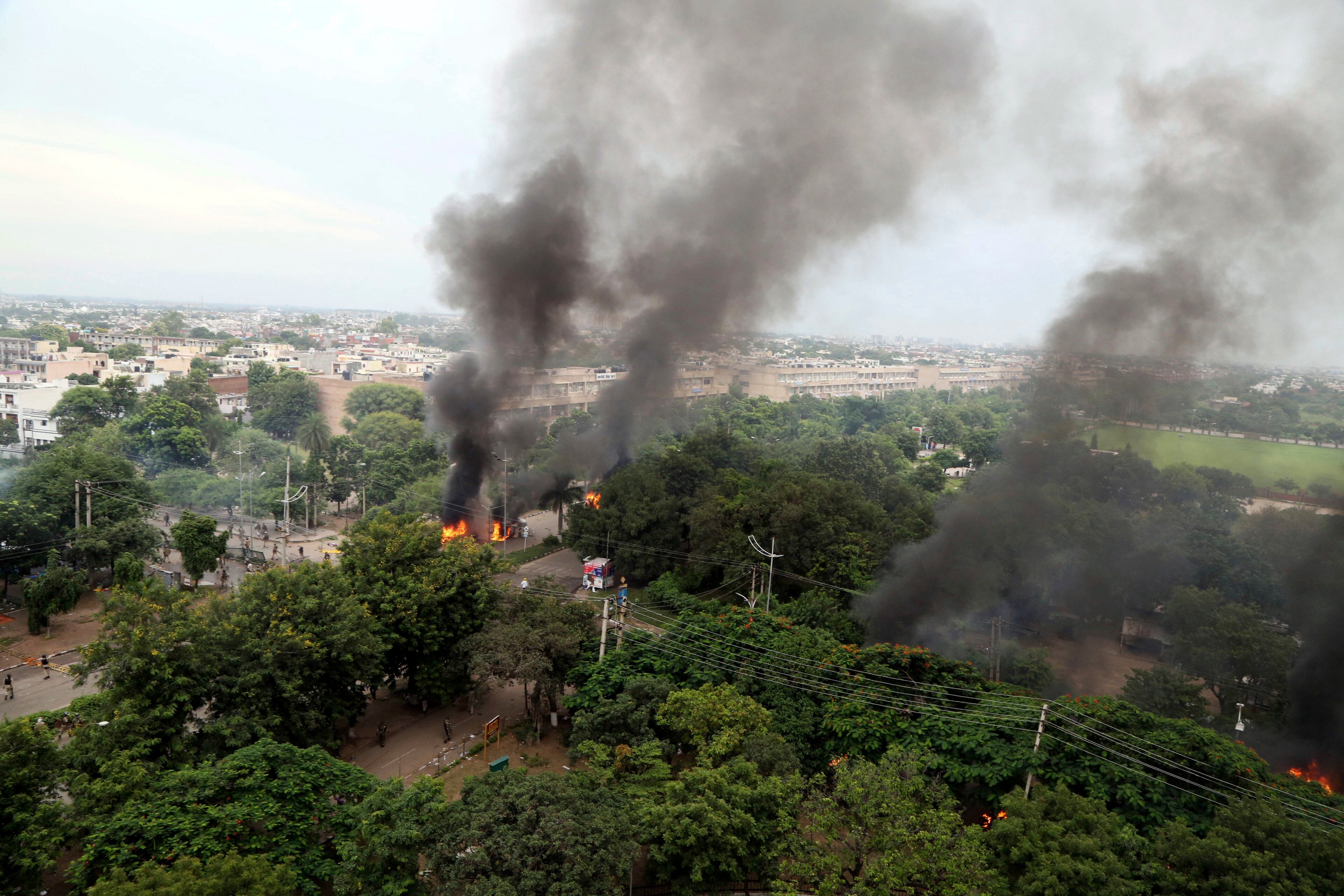 También se registraron actos de violencia en los estados vecinos de Haryana y Punjab, dijo la policía. Se incendiaron estaciones ferroviarias en Malout y Balluana, lo mismo que un vagón de ferrocarril vacío en la estación Anand Vihar de Nueva Delhi.