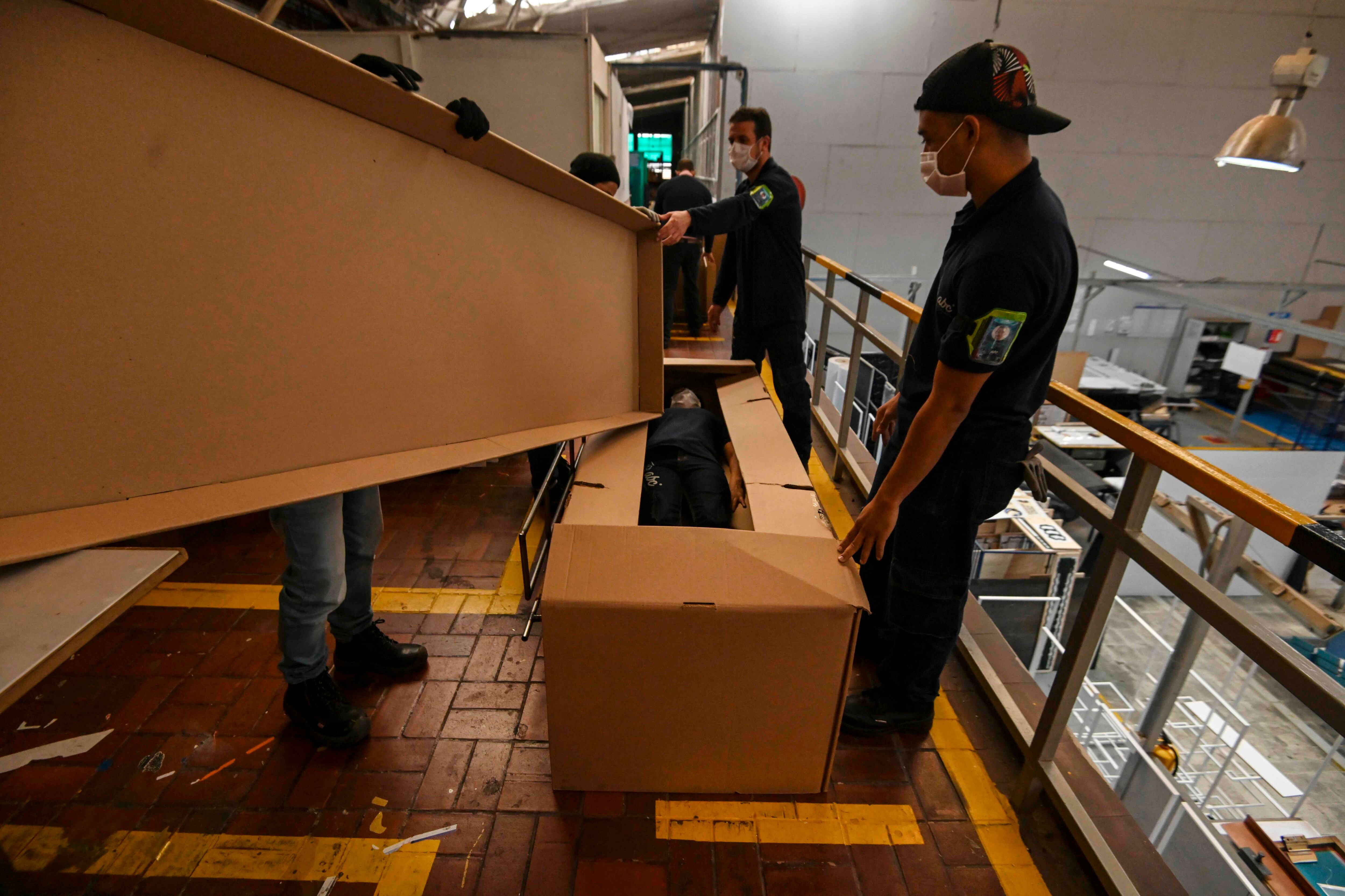 Una decena de camas hospitalarias de cartón serán donadas a la empobrecida Amazonía de Colombia, limítrofe con Brasil y embestida por la pandemia.