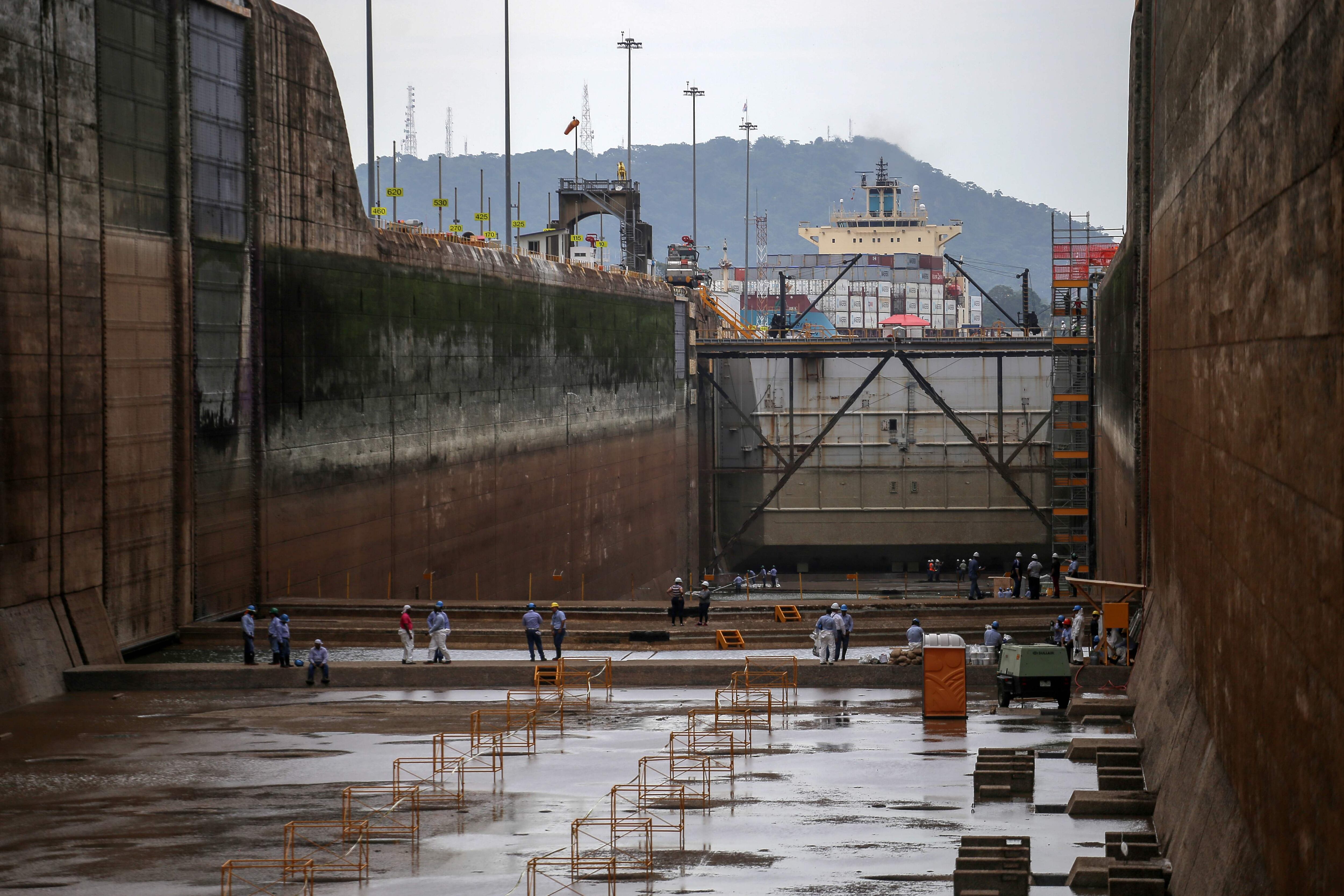 Decenas de obreros trabajan en dos largas cámaras rodeados de altas paredes, gigantescas compuertas y pequeñas columnas de agua cuyo ruido recuerdan a una cascada, mientras un barco cruza a escasos metros el centenario canal de Panamá.