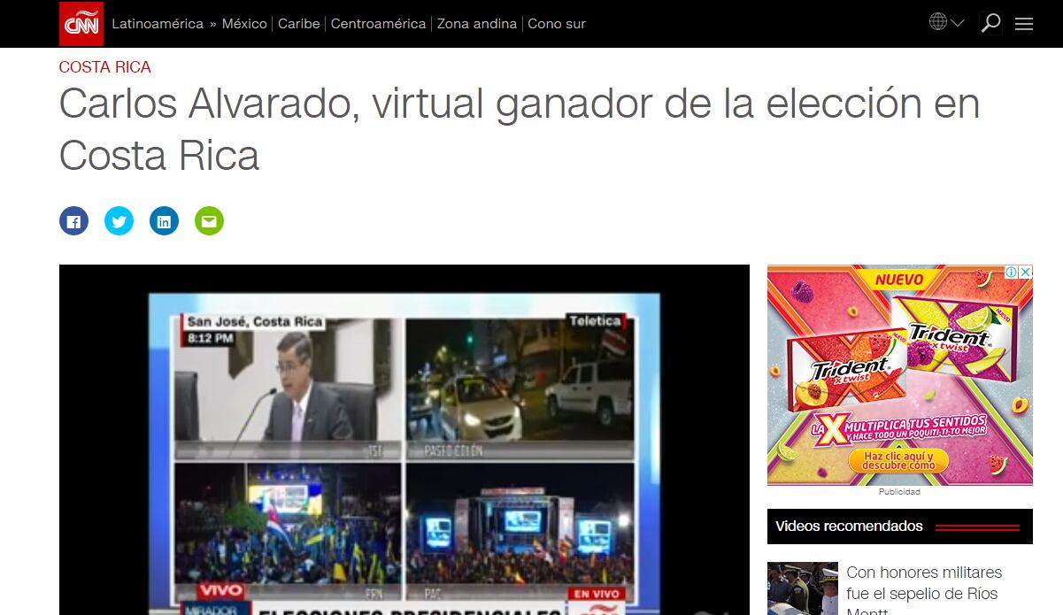 The New York Times, CNN, El Comercio de Perú, El País de España y la BBC, entre otros, fueron parte de los diferentes medios de comunicación que replicaron la noticia sobre el nuevo presidente de Costa Rica.