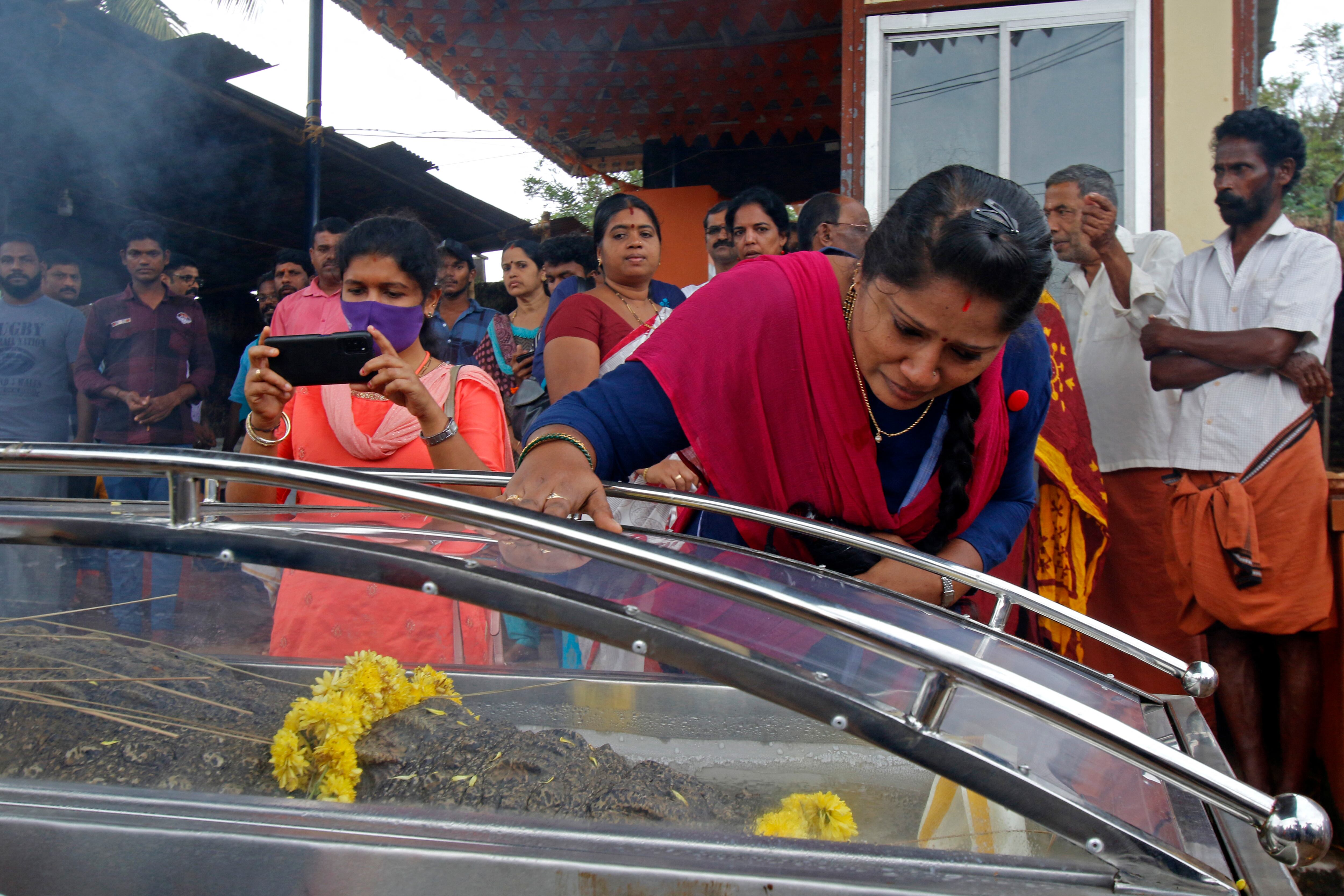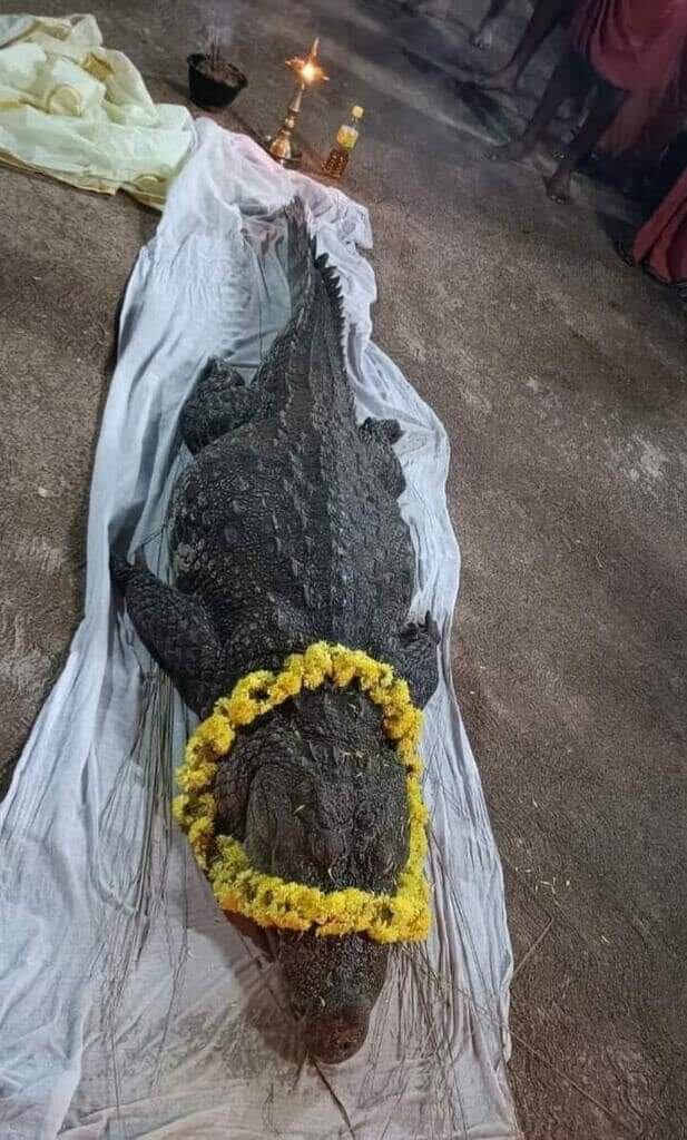 Cientos de personas acudieron este lunes al funeral de un cocodrilo “divino”, el cual sobrevivió durante décadas a base de dieta vegetariana en un templo hindú de la India.