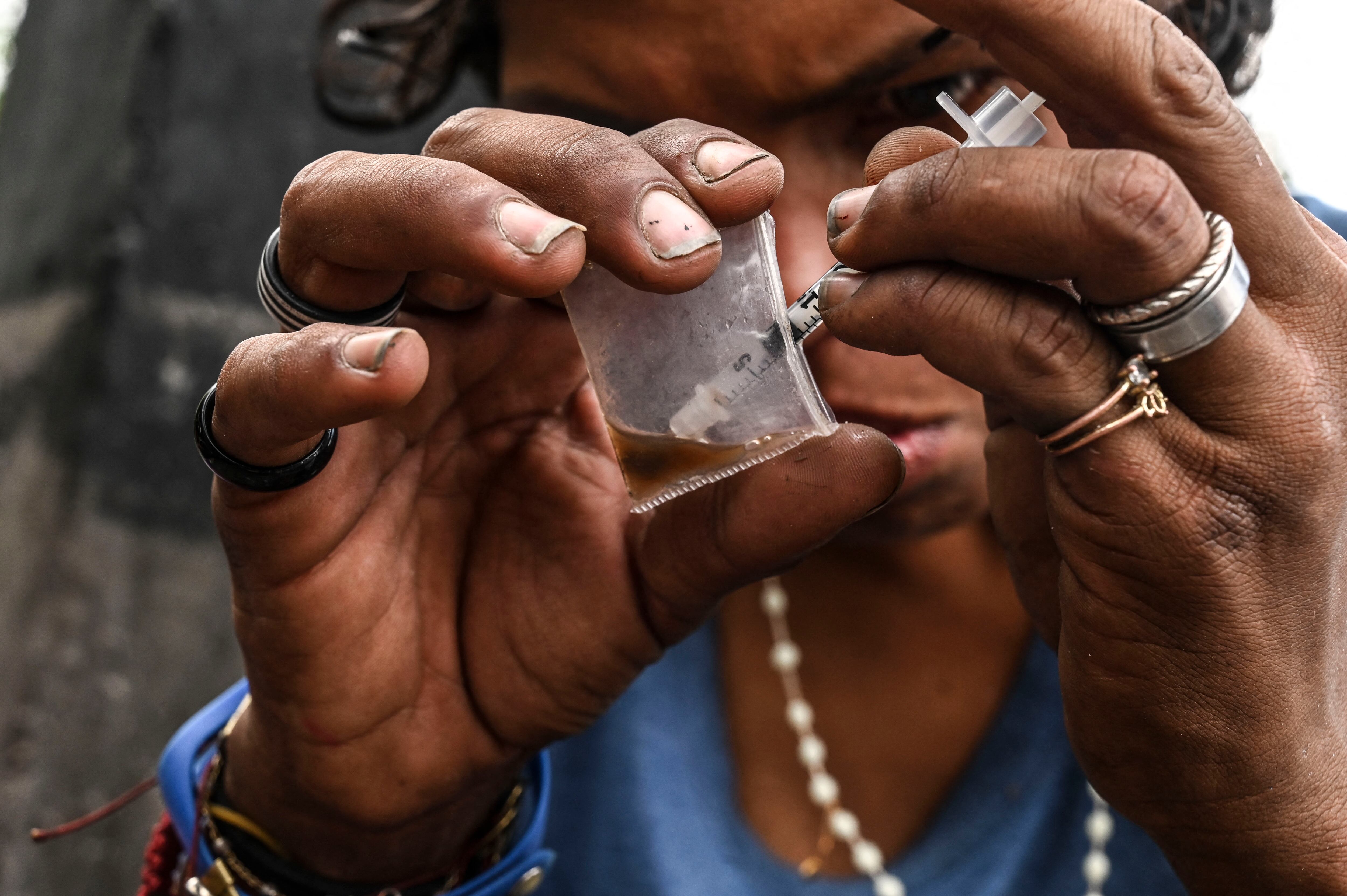 Cuando cae la noche se encuentra con su proveedor entre la multitud en un parque. La transación dura segundos. Necesita inyectarse cuatro veces al día para estar “aliviado”.
