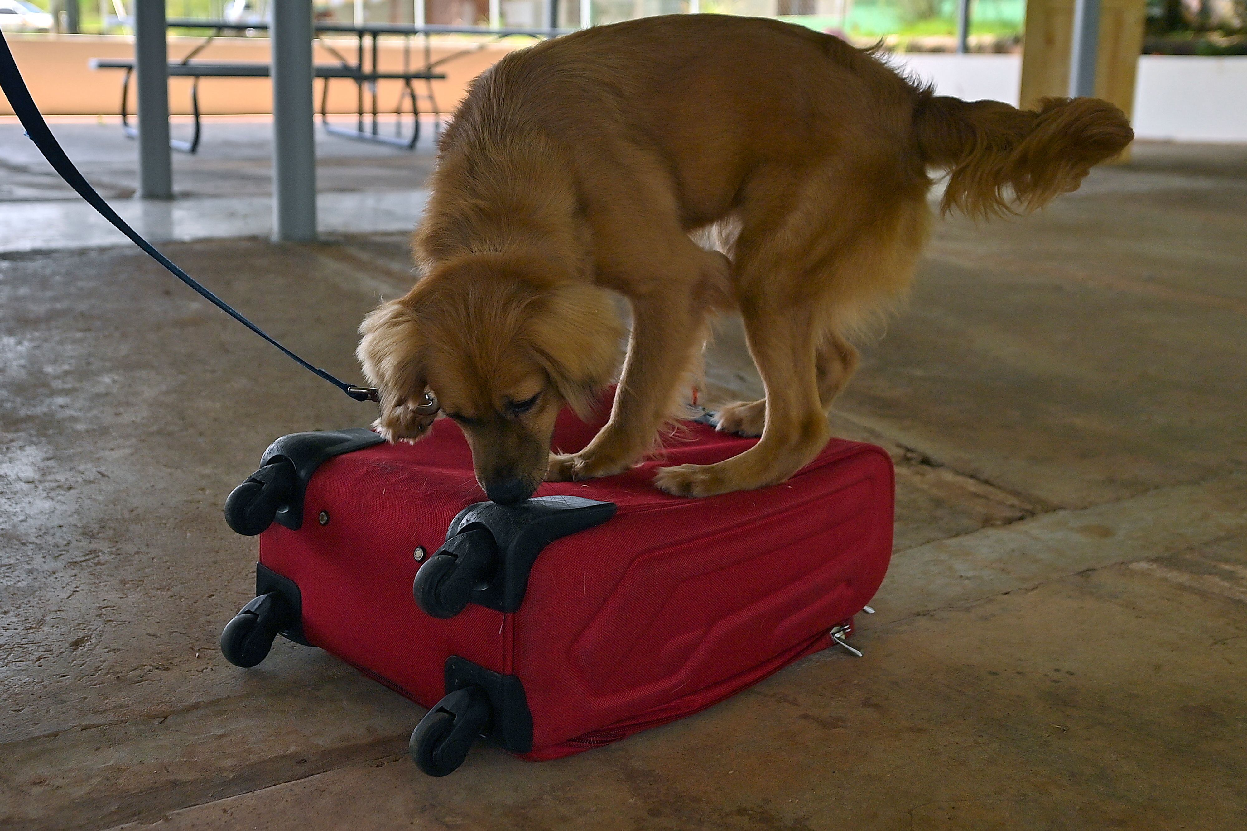 Mili aprendió allí a detectar olores de frutas y legumbres y hace una semana empezó a trabajar. Cada vez que detecta un equipaje sospechoso, rasca la maleta y se sienta al lado de ella, señalándola y esperando recompensa.