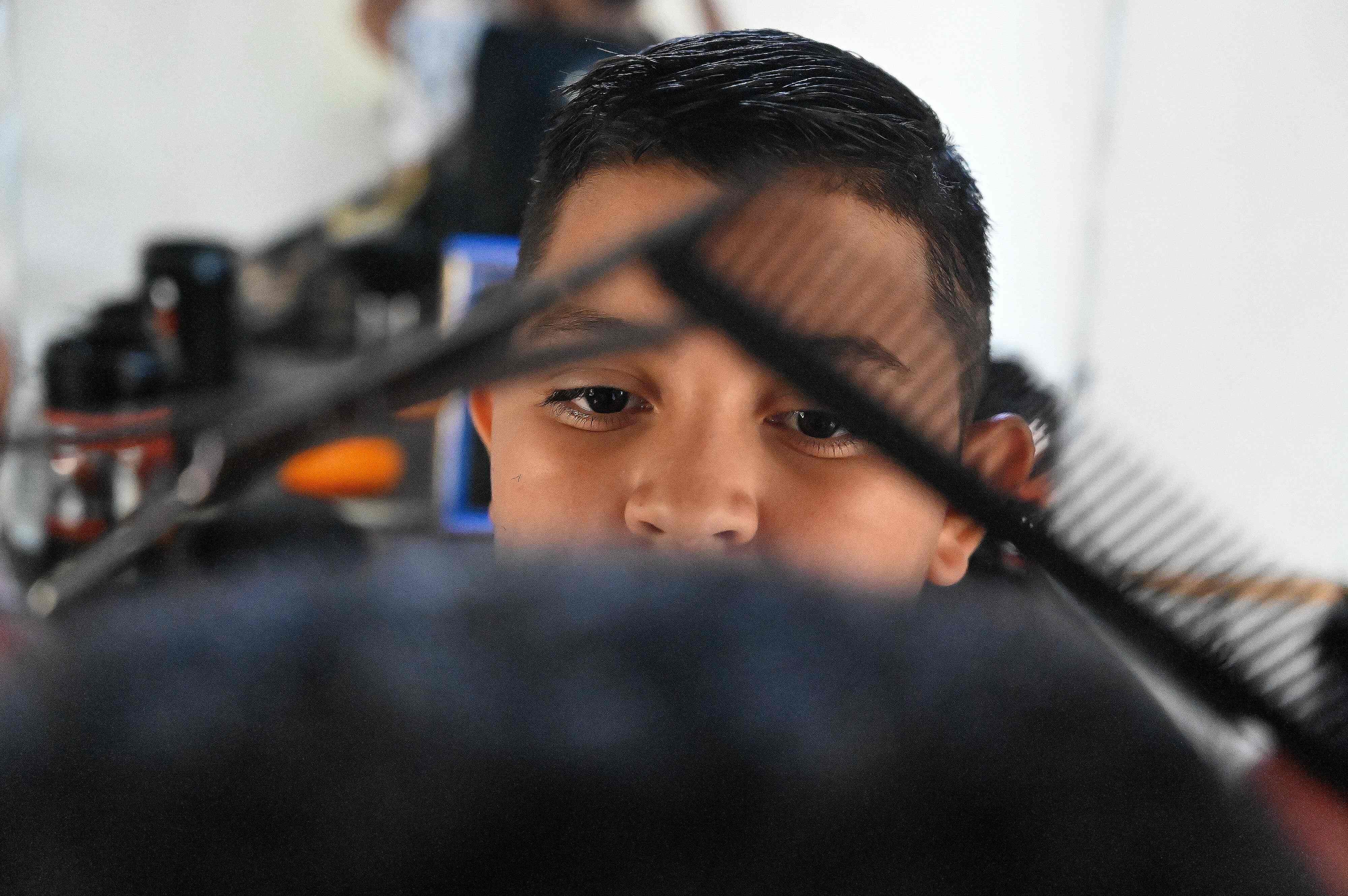 "Mi papi me compró la primera máquina, de ahí comencé a cortarle el pelo a él", cuenta este niño que terminó la primaria en 2021 y tiene planes de empezar la secundaria el año próximo.