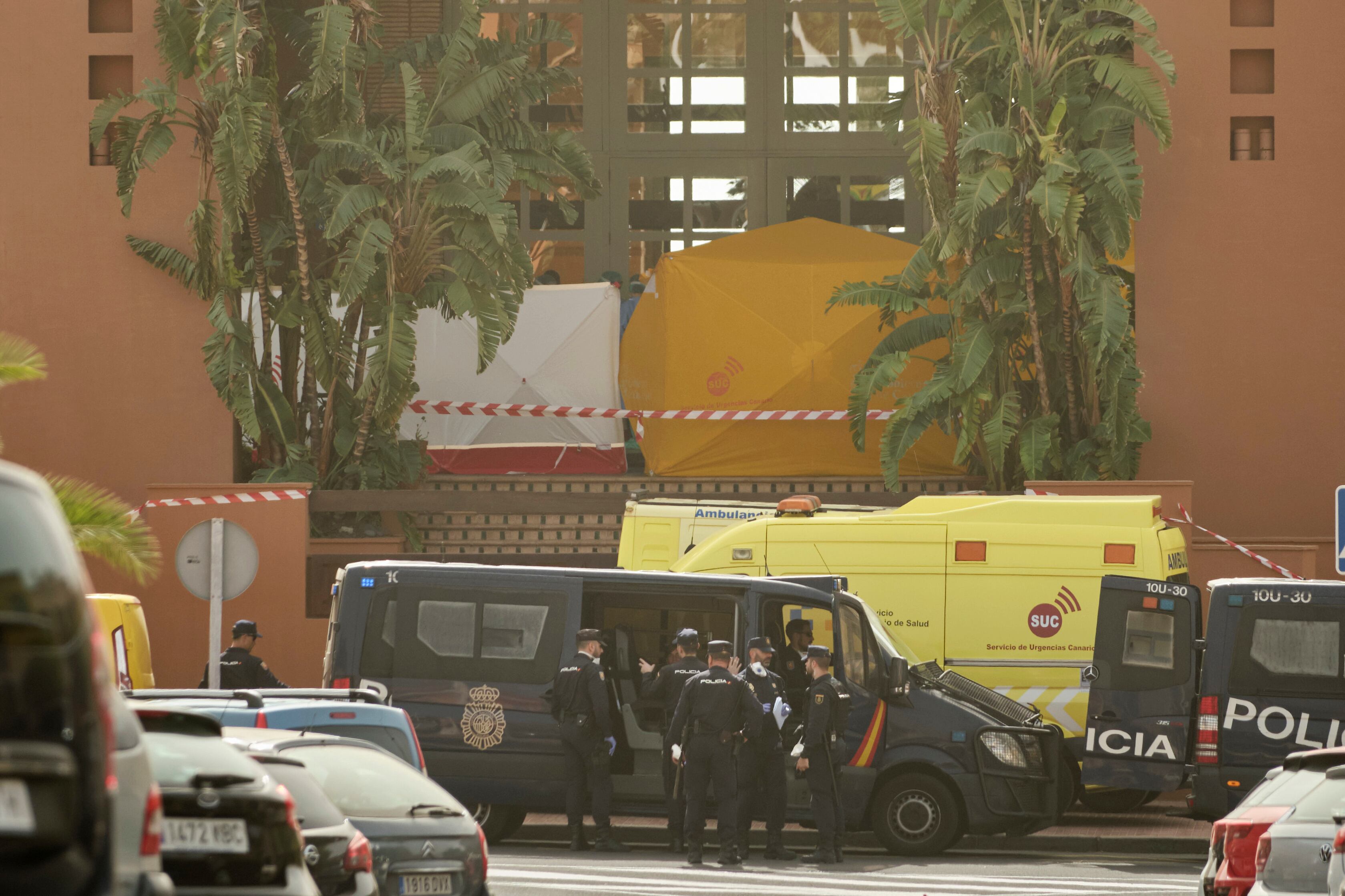 El acceso al hotel de Tenerife, situado frente al mar, estaba bloqueado por un cordón de policías con máscaras protectoras, constató una fotógrafa de la AFP, que no obstante vio a algunos turistas tomando el sol o bañándose en la piscina del establecimiento, dotado de 467 habitaciones.