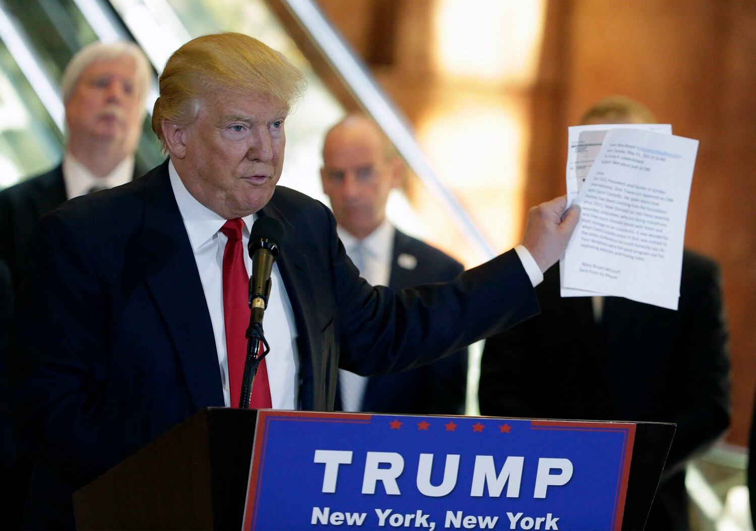 Con la acumulación de controversias, las visitas de Trump a Nueva York se tornaron breves y ocasionales. Prefirió sus clubes de golf del vecino estado de Nueva Jersey en vez de su domicilio en la Trump Tower, en la Quinta Avenida, el lugar preferido de sus detractores para protestar en su contra.