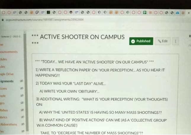 La noticia fue divulgada por el propio profesor, llamado Jeffrey Keene, quien tiene 63 años y decidió, mediante su perfil de Facebook, contar los motivos que lo llevaron a pensar en ese tipo de tareas para sus estudiantes, la cual planteó por la posibilidad latente del ingreso de una persona armada al establecimiento ubicado en Orlando, Florida.