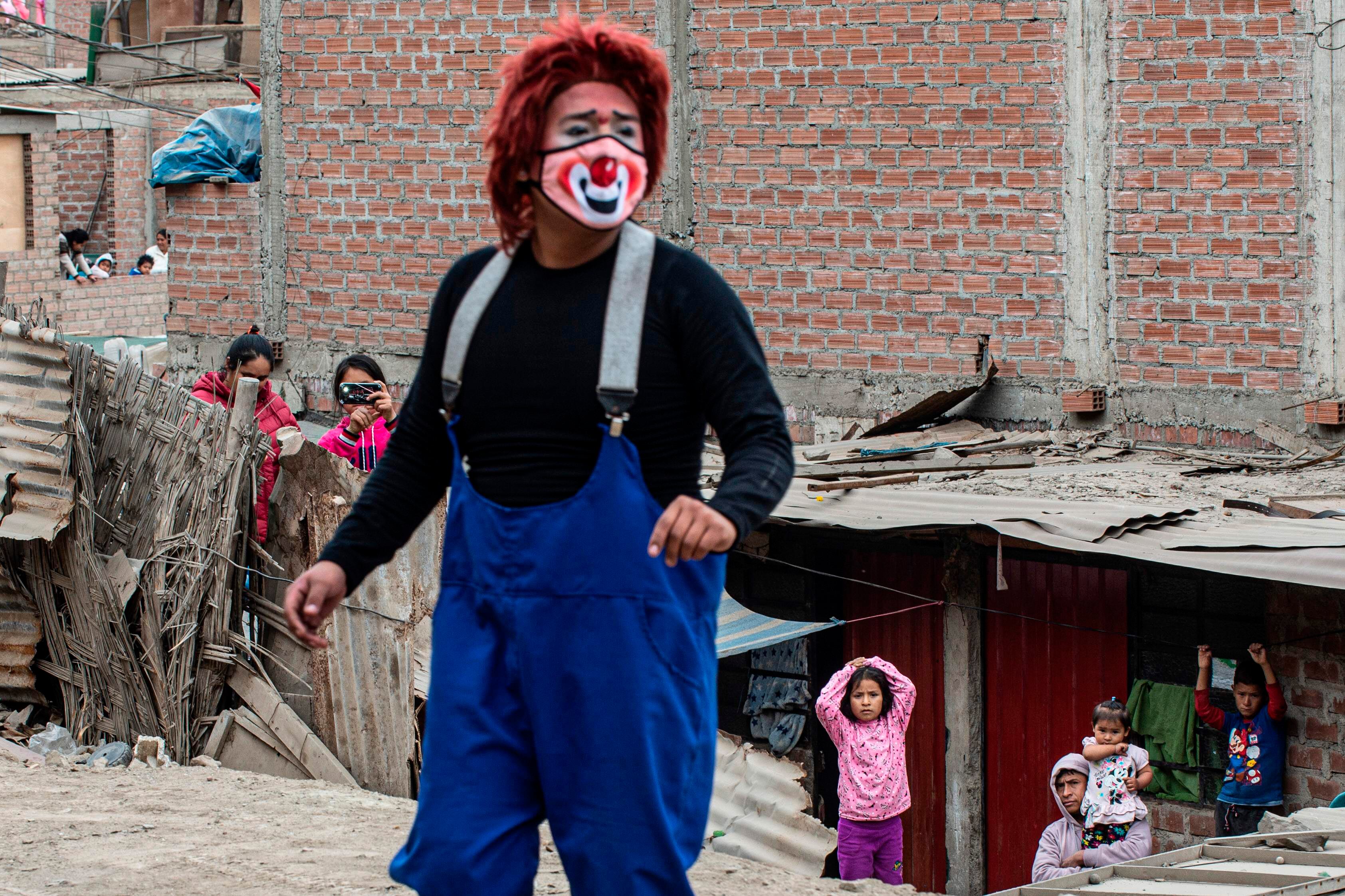 “Yo honro su trabajo, señores payasitos, pero lamentablemente no se les puede eximir de responsabilidad. Ustedes han cometido un delito y lamentablemente quedan detenidos”, dijo un oficial de la comisaría de San Juan de Lurigancho, uno de los distritos más afectados por la pandemia en Lima.