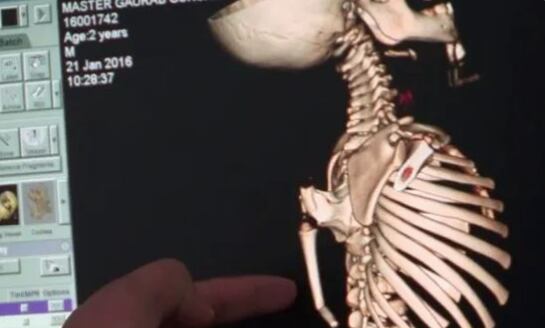 Esta extremidad que se encuentra en su espalda no se mueve y son los restos de un gemelo no desarrollado que iba a tener el pequeño Gaurab Garum. Sin embargo, lo preocupante es que este crece a partir de una división, conocida como espina bífida, en la columna vertebral del niño.