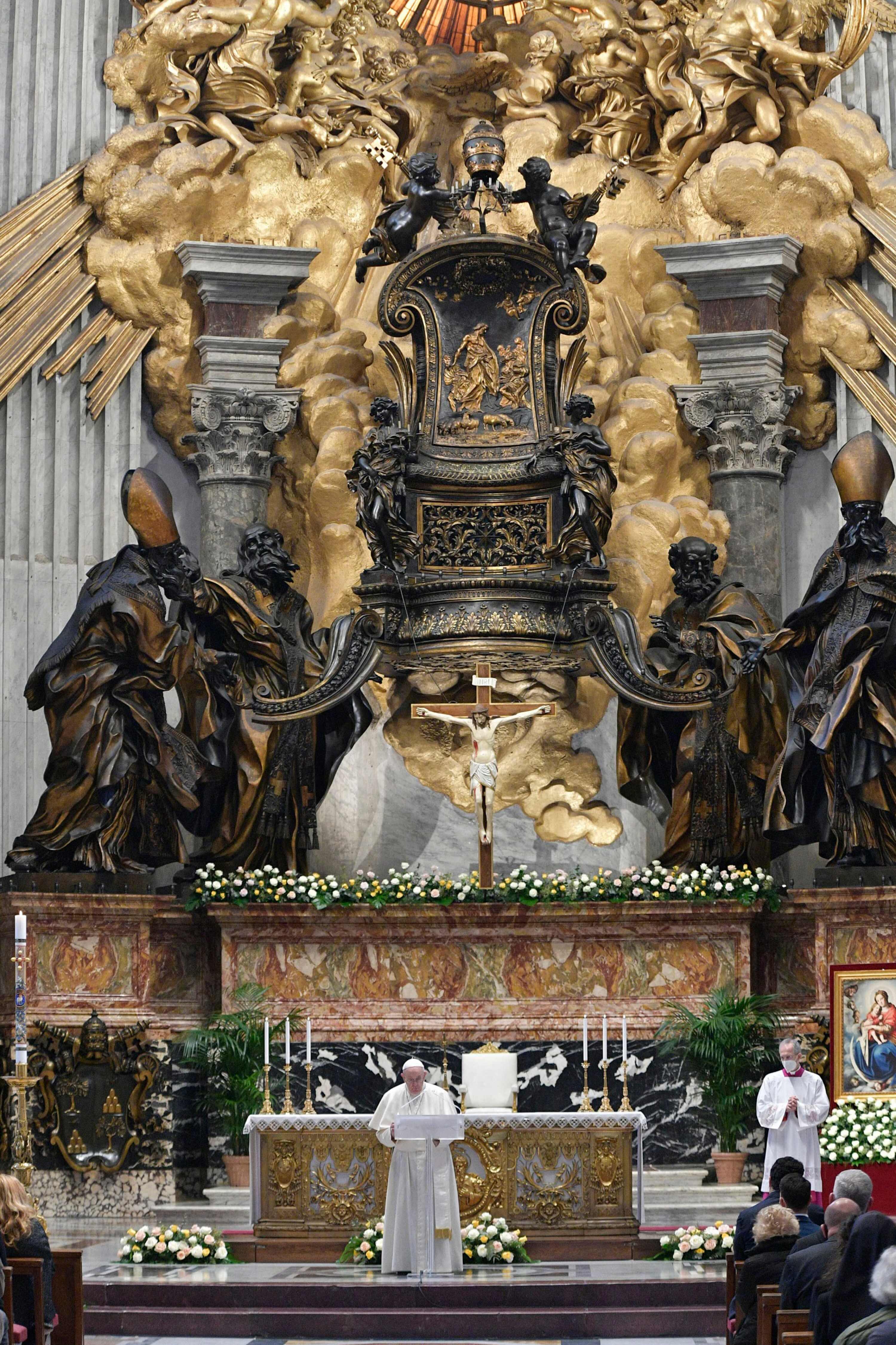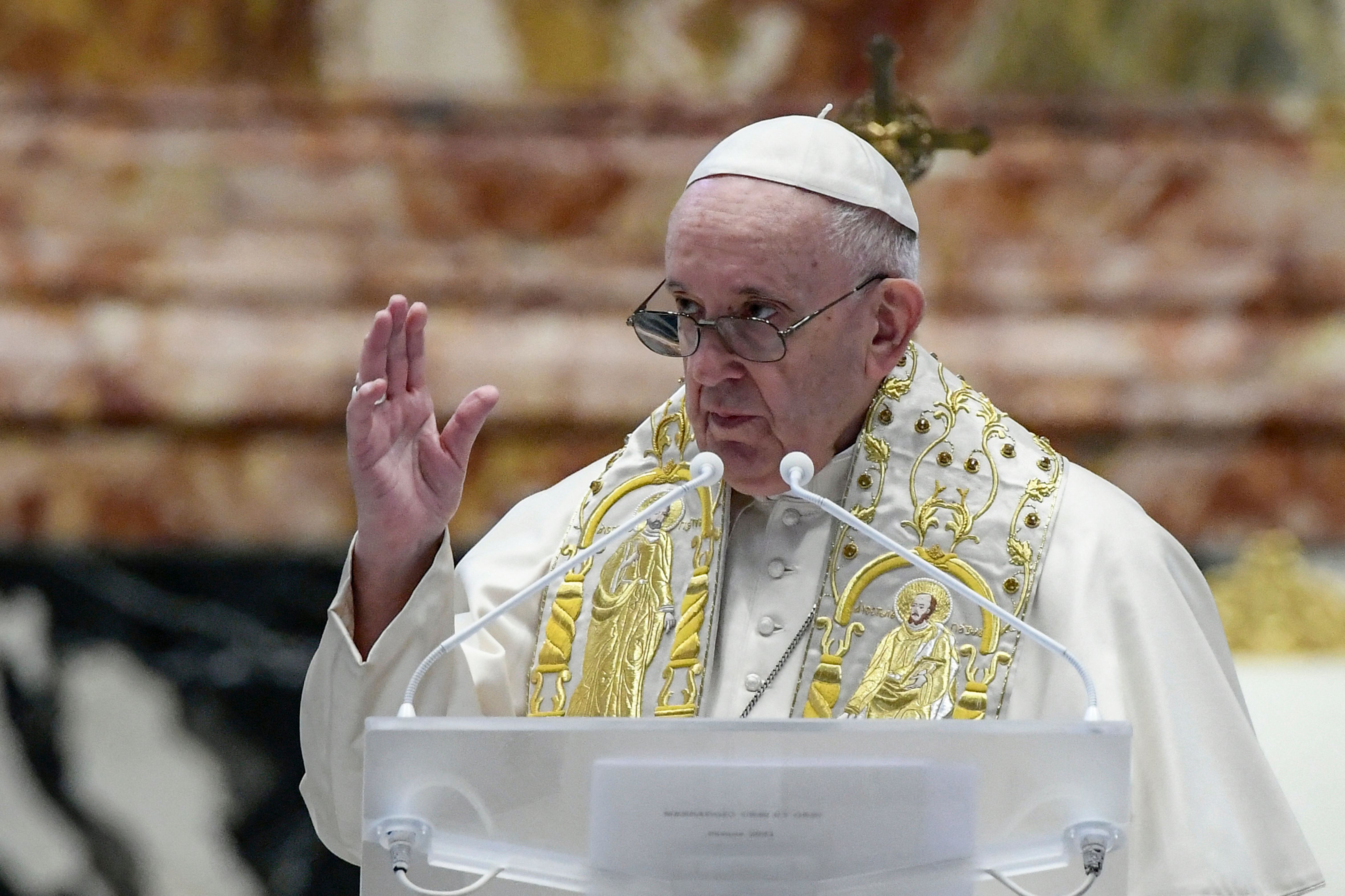 Pronunció su homilía desde una basílica de San Pedro con muy pocos asistentes. Normalmente, preside estas celebraciones ante decenas de miles de fieles en el Vaticano.