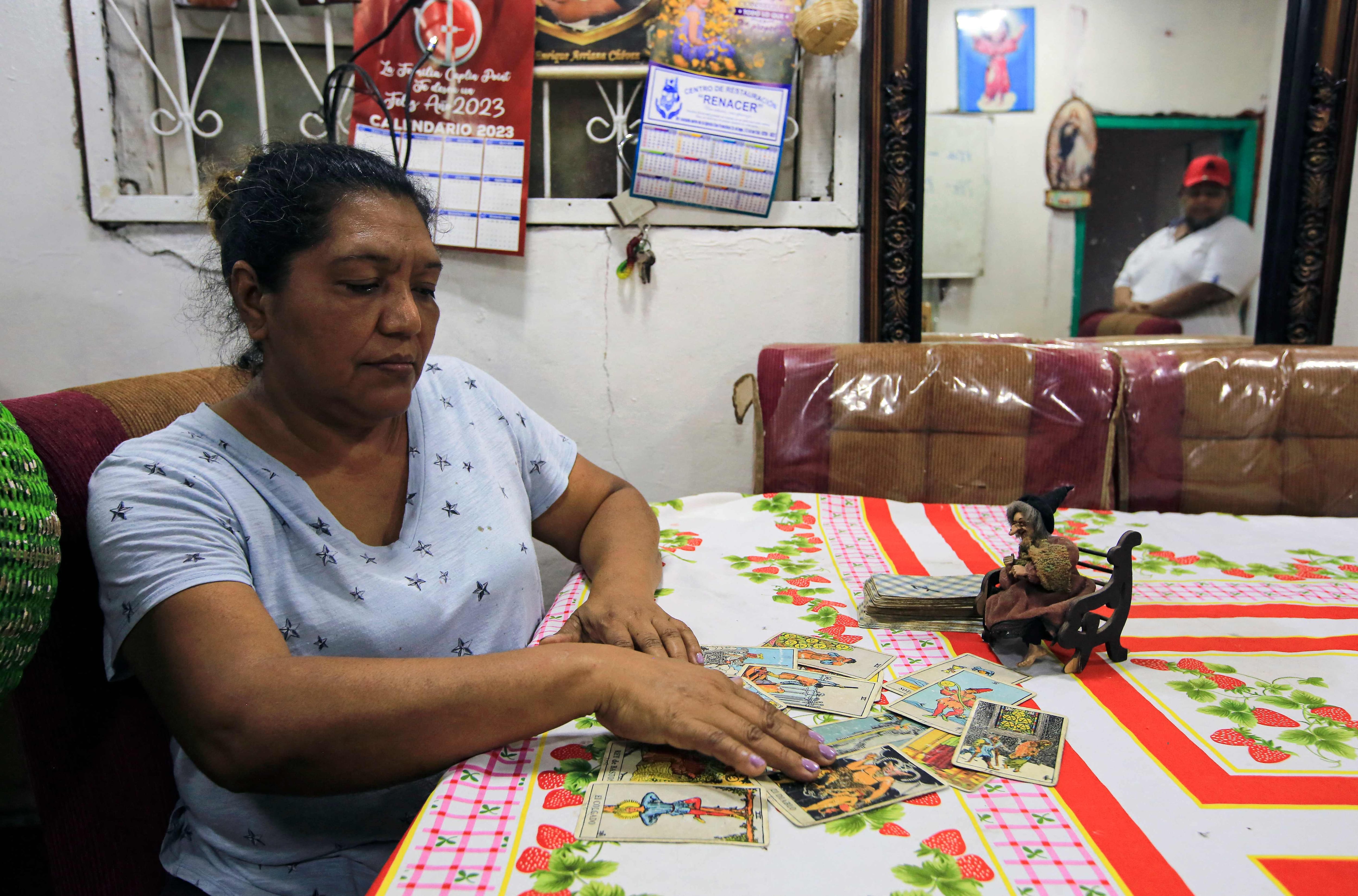“Vienen bastante también por pareja, buscando ayuda, que otra persona le quita al esposo y en eso no es malo ayudarle”, afirma Sánchez, quien lee el tarot y apoya a su esposo Gregorio Vargas.