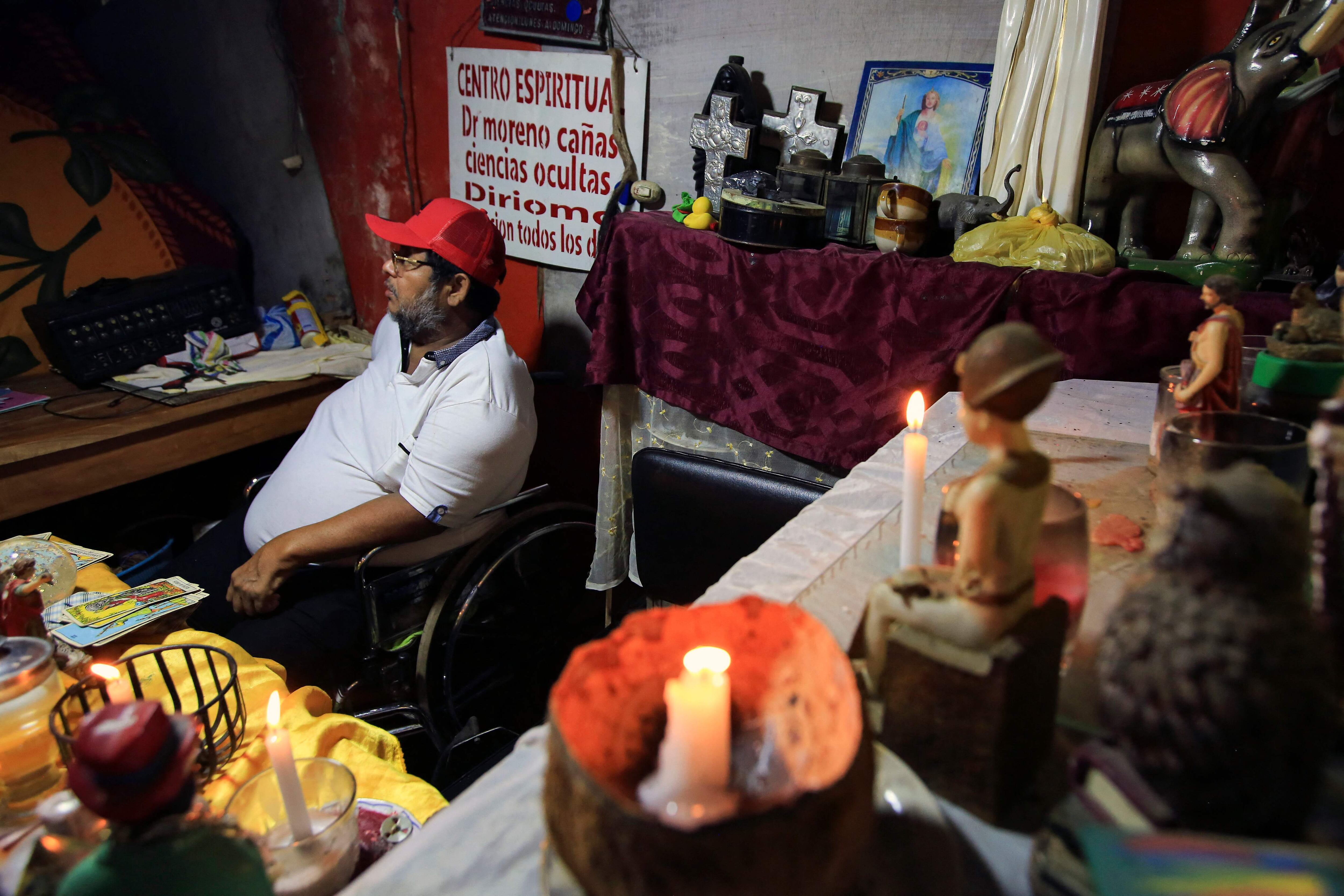 En el consultorio hay santos y cruces católicas, representaciones de Changó, un dios de la santería afrocubana, e imágenes de búhos y deidades de la magia y el ocultismo que ayudan a Vargas, de 52 años, uno de los curanderos o “brujos” de este poblado, 40 kilómetros al sur de Managua.