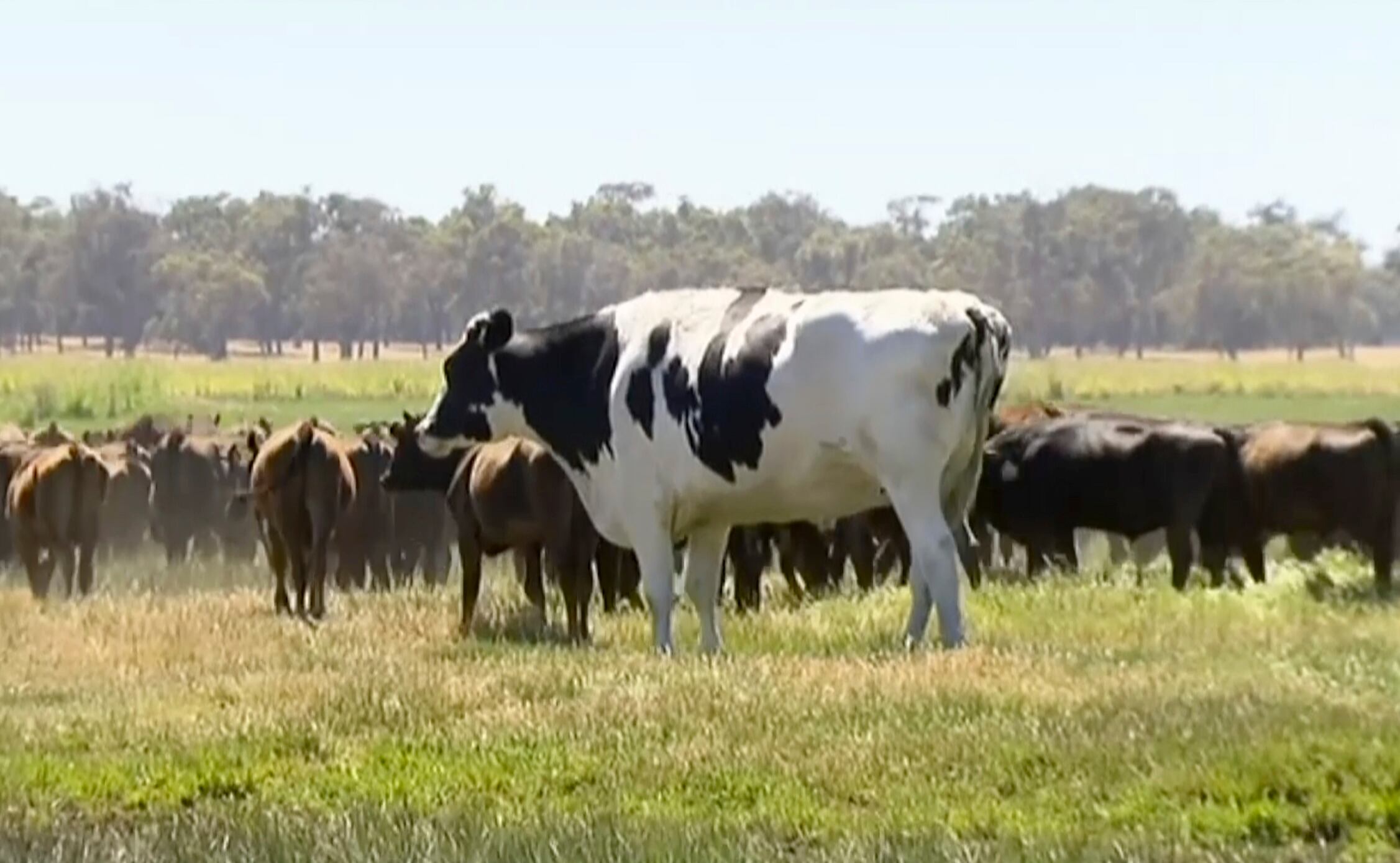 Es evidente que Knickers no es una vaca cualquiera. Sus 1.400 kilos y sus casi dos metros de altura, el doble que una vaca normal, sorprende a todos los que la ven. Su propietario la ha bautizado comola vaca más grande de Australia, y su historia está recorriendo todo el mundo.
