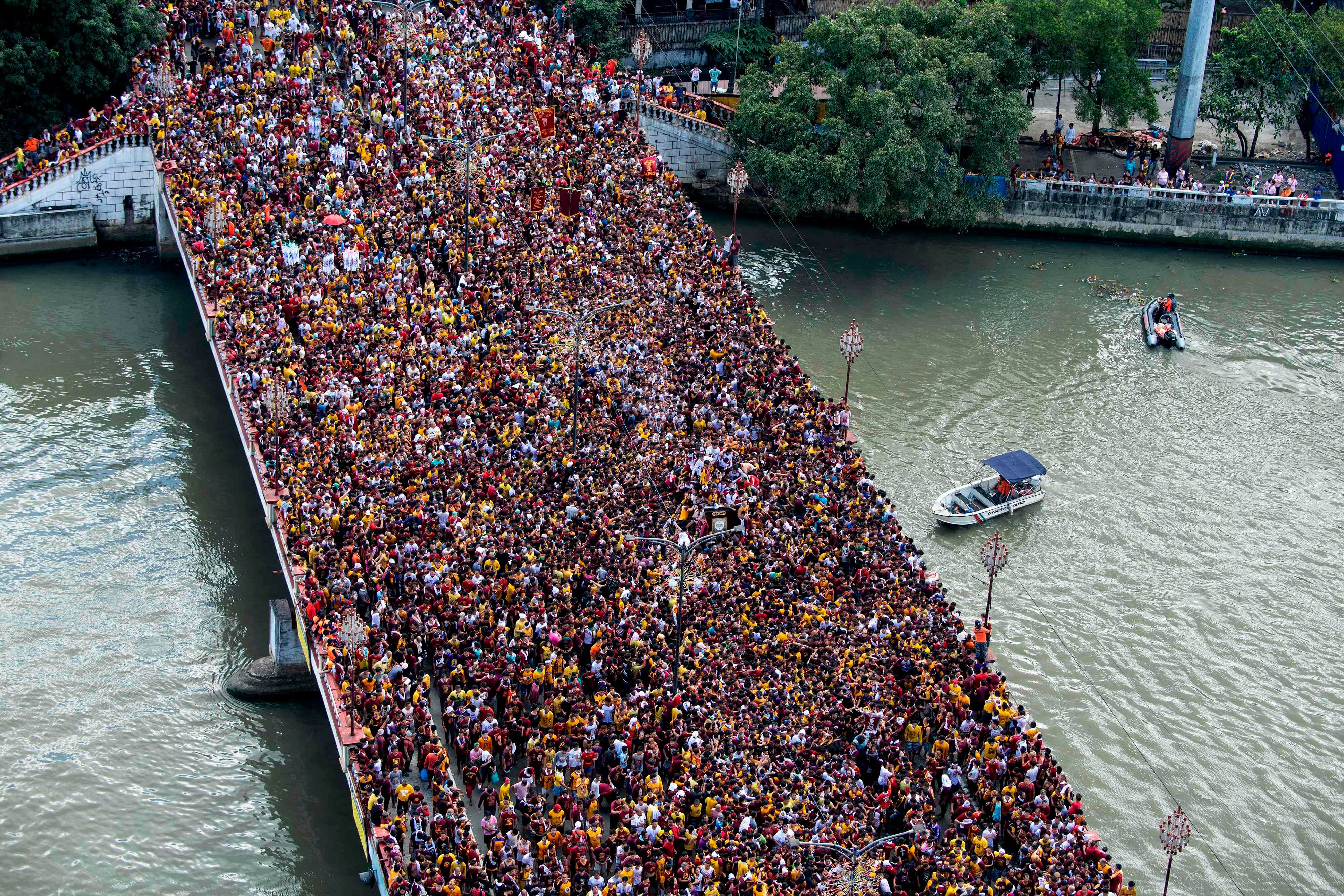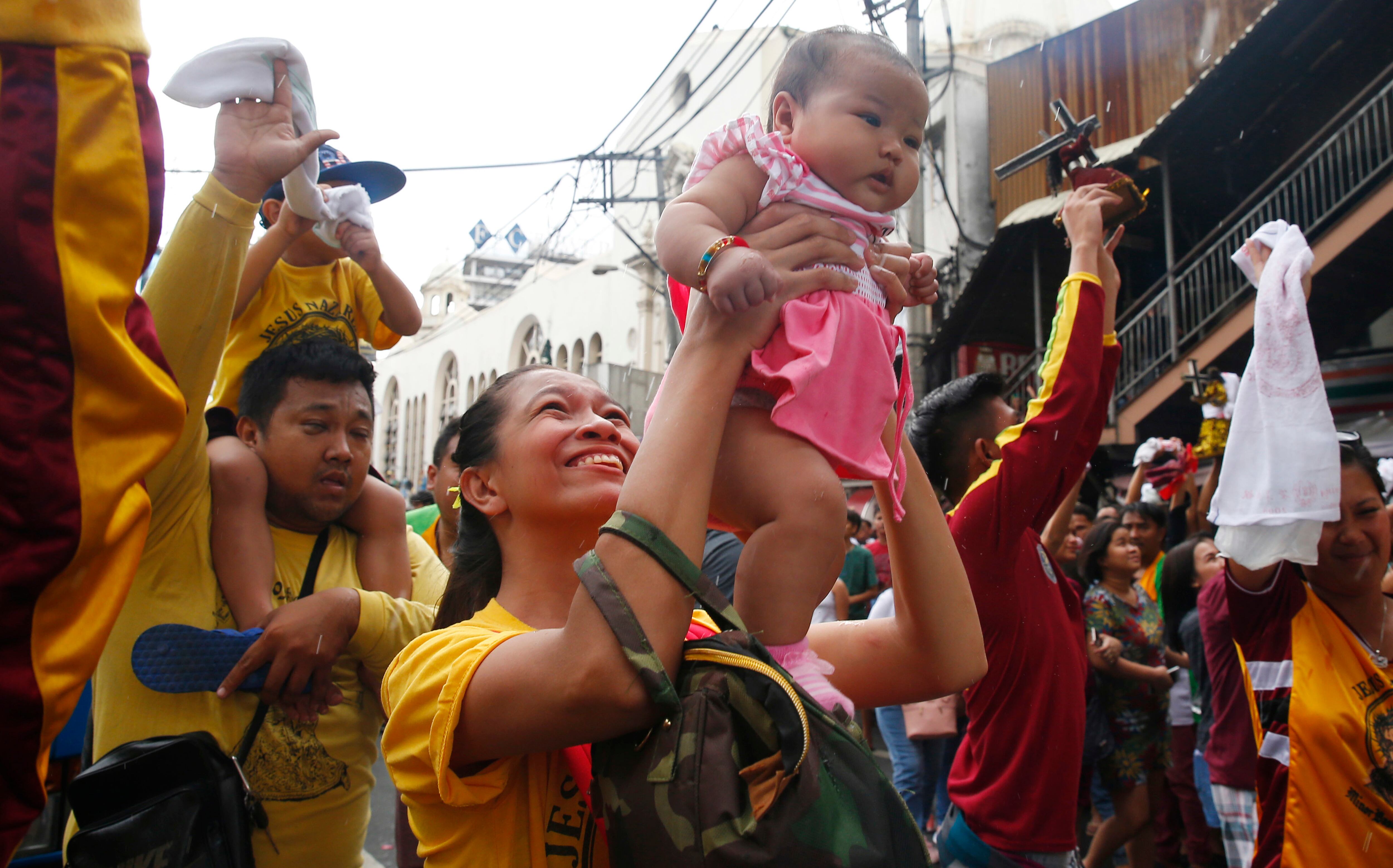 Los creyentes se apelotonaban tratando de alcanzar la imagen, transportada sobre una plataforma metálica a lo largo de siete kilómetros por las angostas calles de la capital de Filipinas. Están convencidos de que puede curar enfermedades y traer buena suerte.