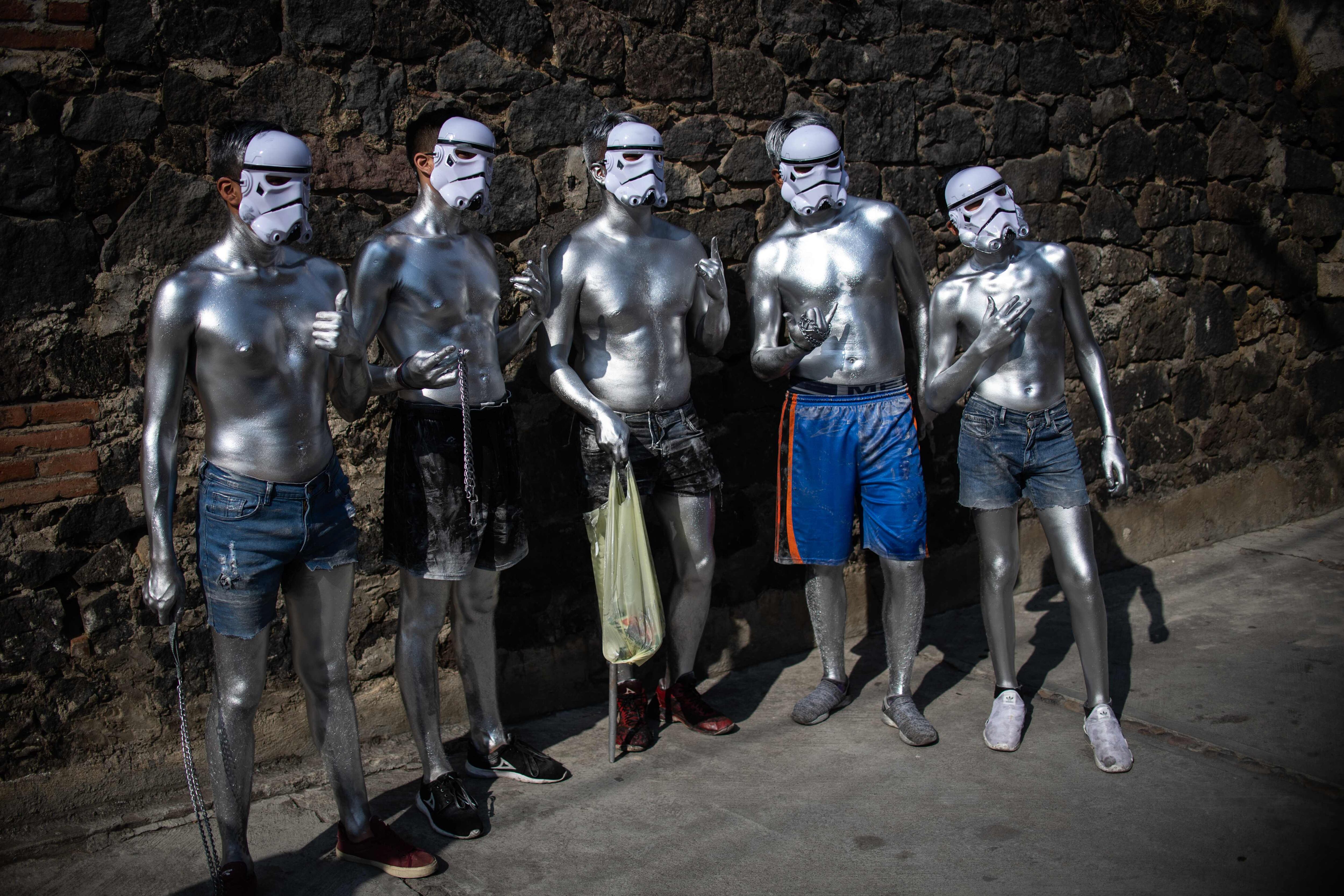 "Originalmente era un ritual que se hacía en esta zona para la buena cosecha, ya que esta zona era nada más de pura agricultura y de temporal, para eso se hacía para pedir una buena cosecha de temporal", explica a la AFP Rodrigo Castillo, un "xinacate" de 33 años con el cuerpo pintado color plata y una máscara de lucha libre.