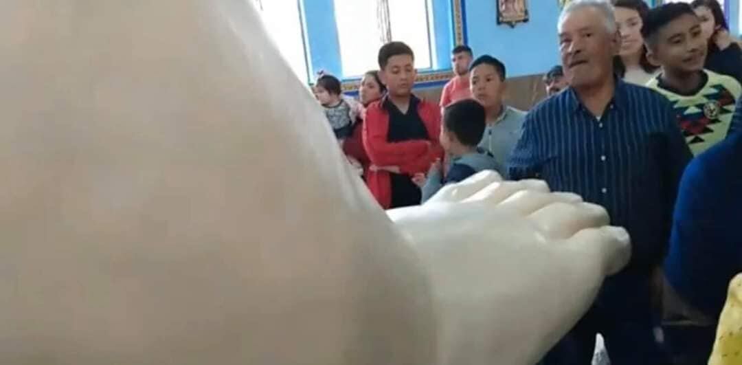 El párroco también presentó ante los feligreses al artista que elaboró esta imagen, el artesano Román Salvador, procedente de Chimalhuacán, quien en estos días ha trabajado en el armado y en los detalles finales, ya solo falta pintar al óleo los ojos la boca y colocación de pestañas, cuyos trabajos se esperan que concluyan este lunes.