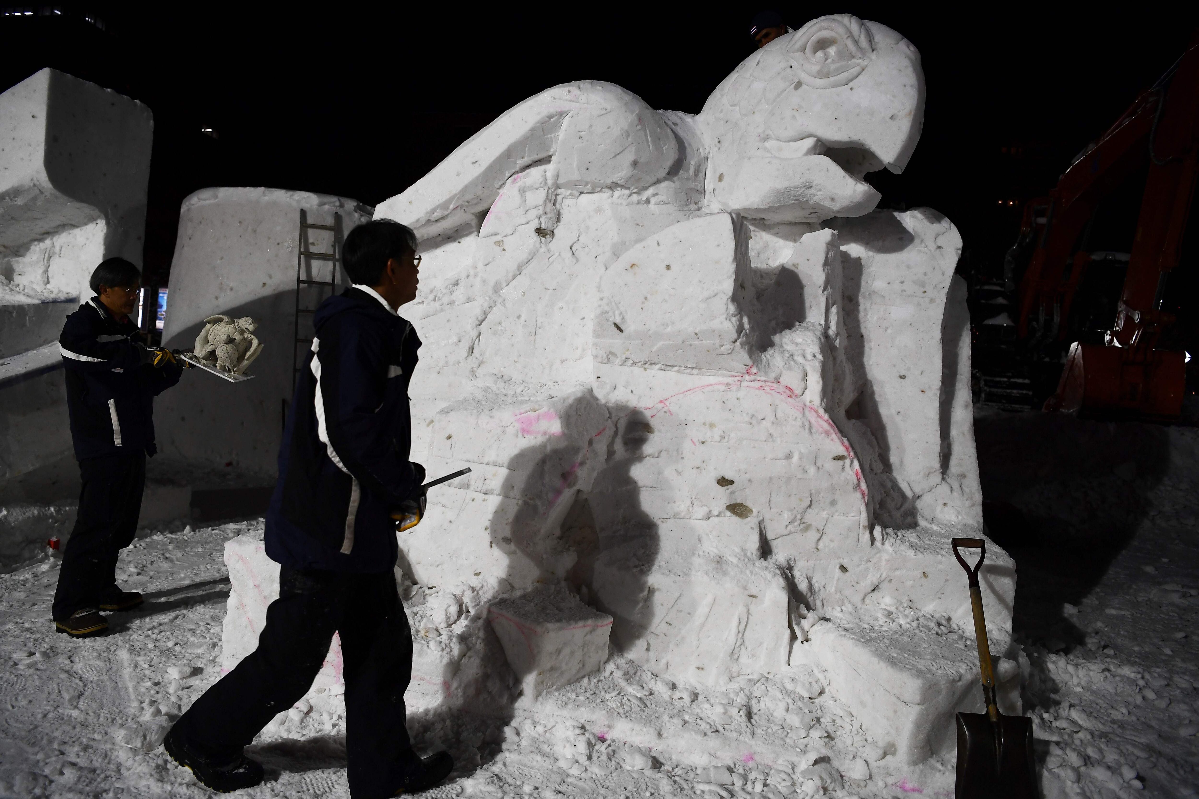 “Esta falta de nieve es nueva, nunca se había visto”, afirma Yumato Sato, uno de los encargados en organizar este festival, que normalmente utiliza 30.000 toneladas de nieve para dar forma a sus esculturas, que van desde la representación de personajes animados hasta carreras de caballos.