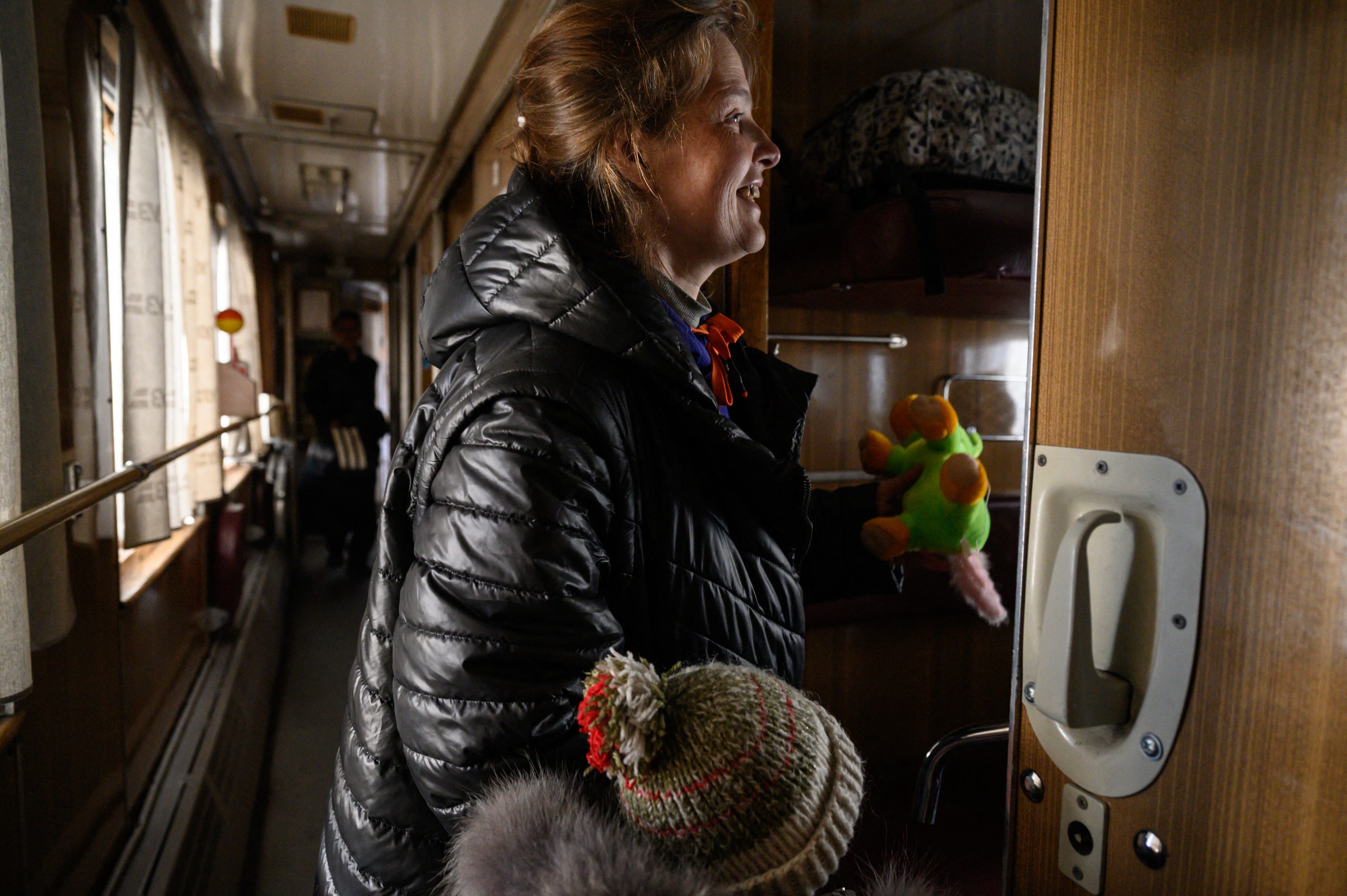 El viernes, los Tishchenko-Komisarova se apiñaron con sus escasas posesiones en un estrecho compartimento de un tren hacia Leópolis.