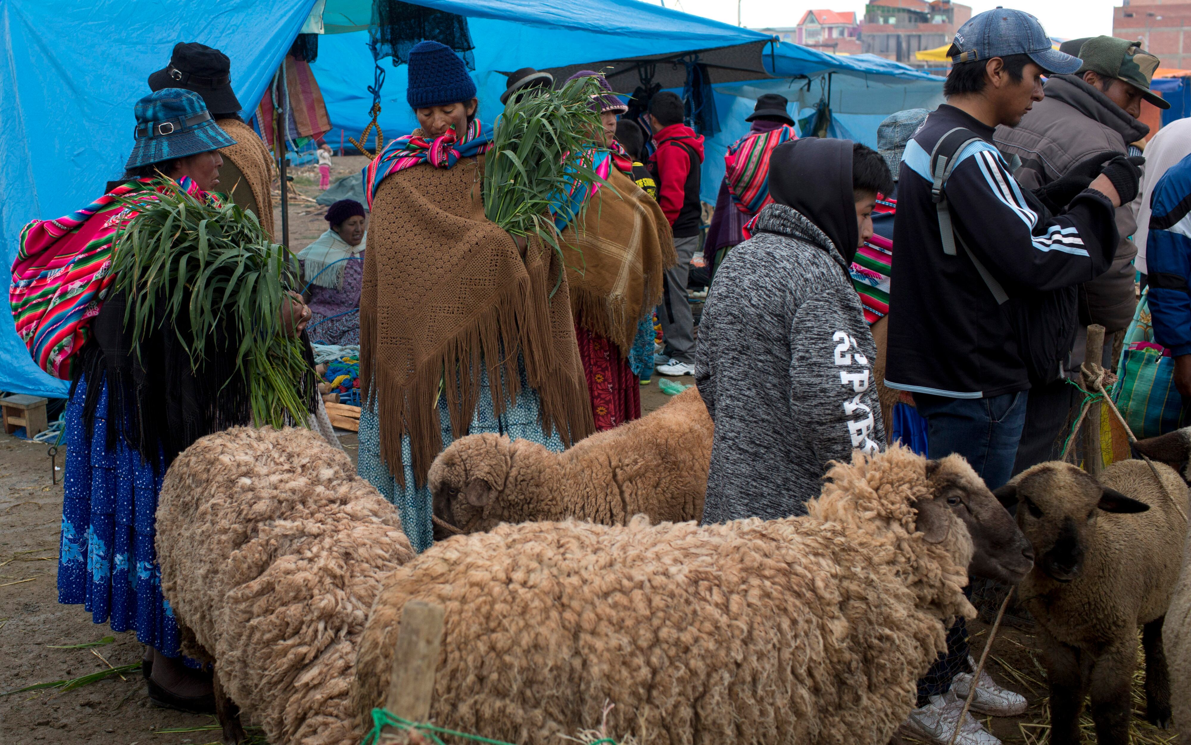 Tras la llovizna de la noche el aire huele a oveja mojada en el mercado donde indígenas llegan a vender y comprar animales en una singular feria callejera anual en los suburbios de esta ciudad boliviana de rostro aymara.