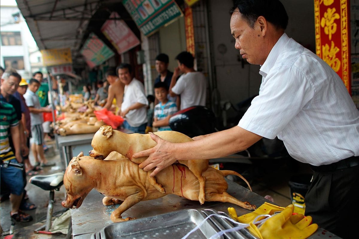 Aunque desde el 2017 se aprobó una ley que prohíbe a los comercios del país vender carne de perro, el festival se sigue realizando en el mercado Dashichang de Yulin, donde se amontonan las jaulas con perros y gatos para ser sacrificados.