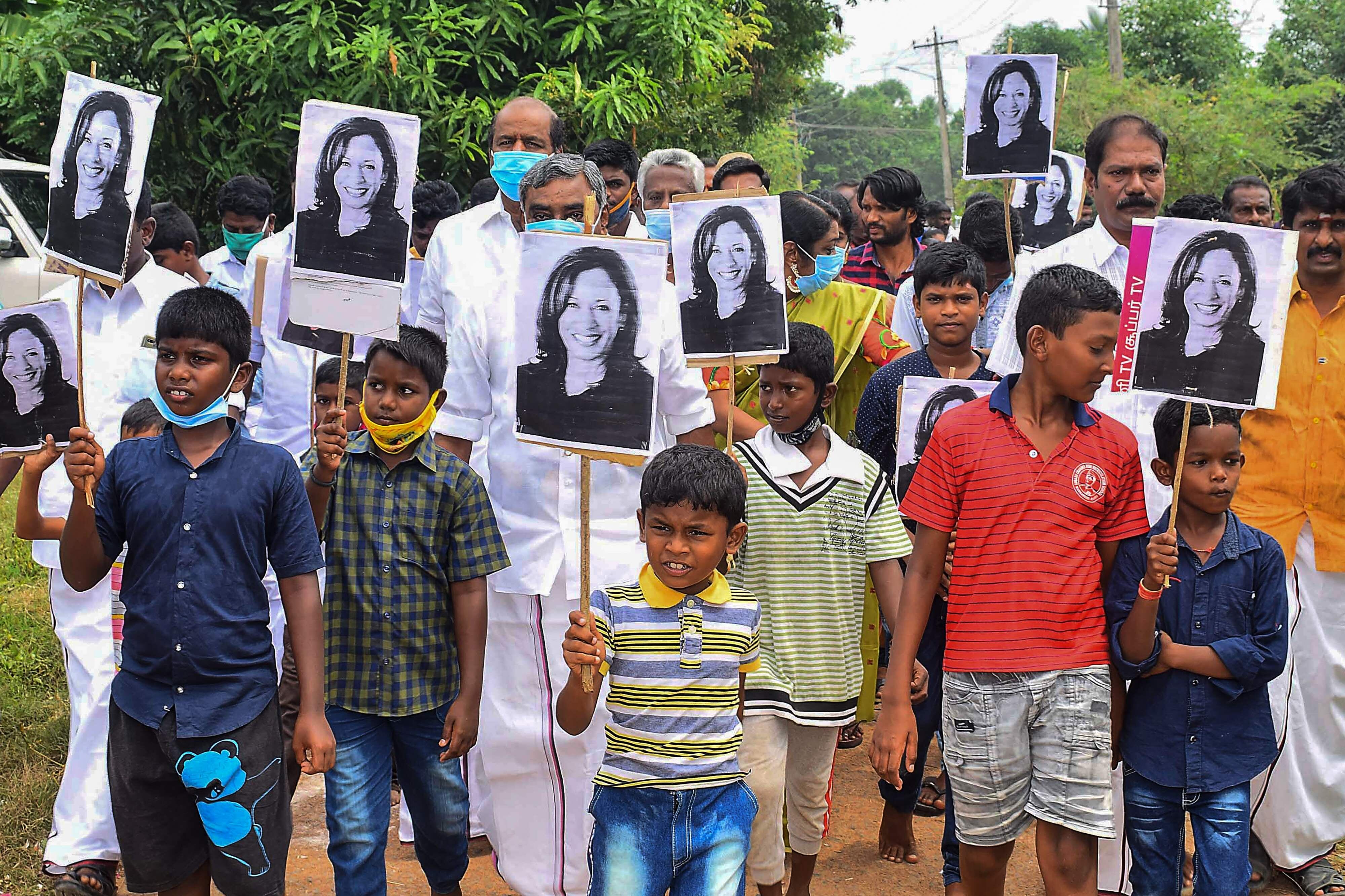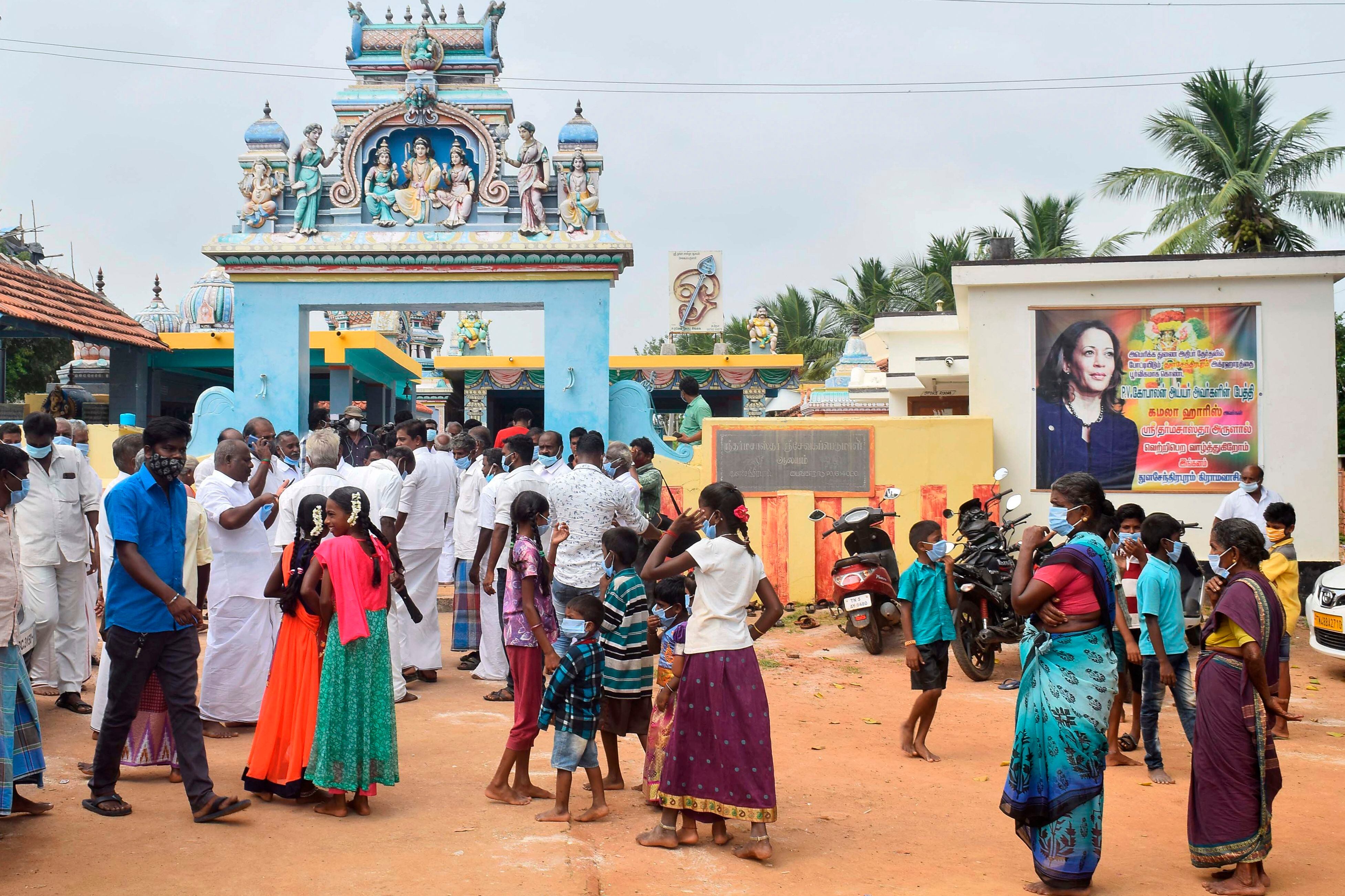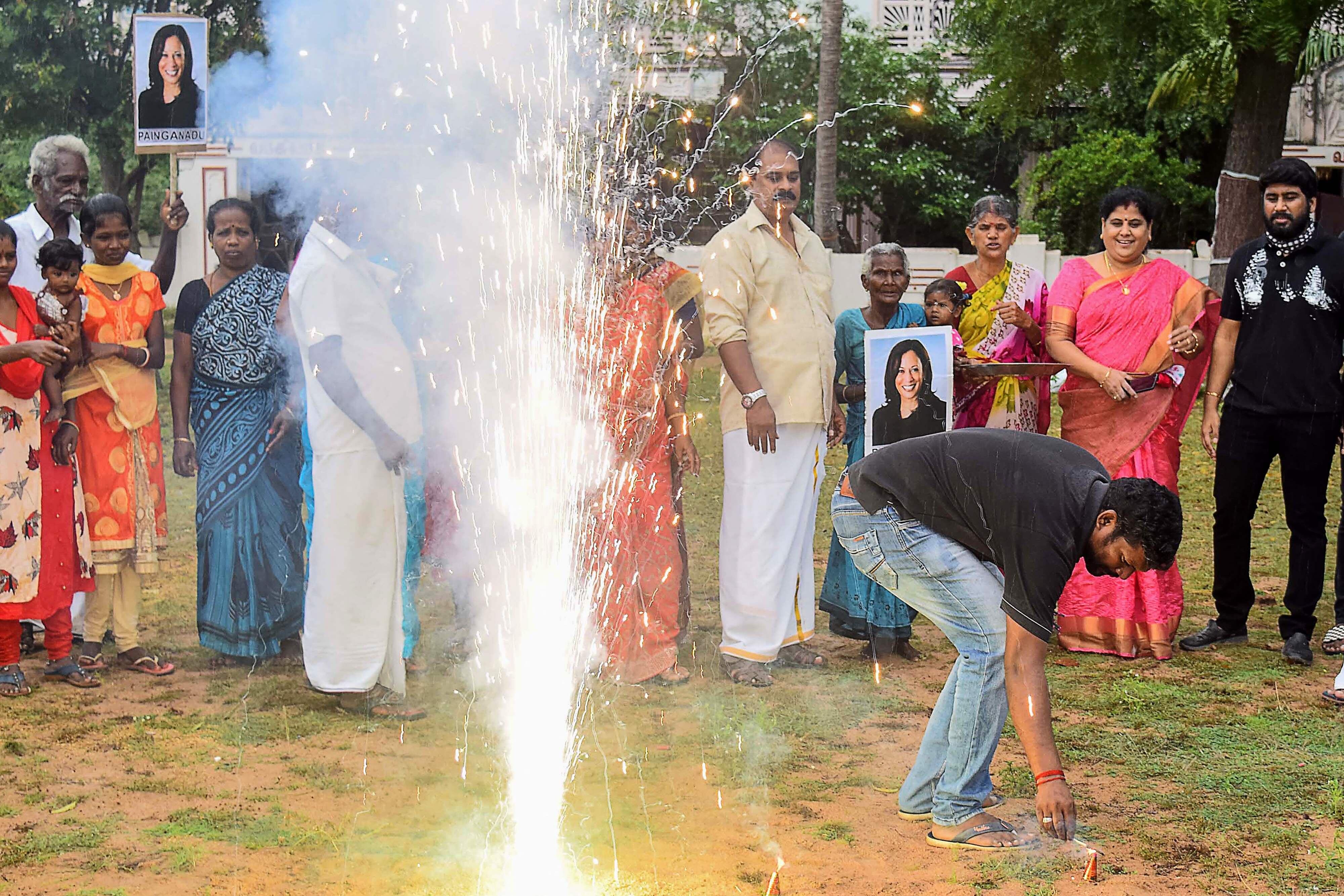 En el pueblo de Thulasendrapuram, en el estado de Tamil Nadu, hogar del abuelo materno de Harris, P.V Gopalan, las celebraciones comenzaron con los residentes lanzando pólvora, rezando en su principal templo y ondeando carteles con el rostro de la vicepresidenta electa.