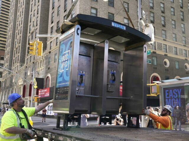 Ante la prensa, las autoridades municipales y el presidente del barrio de Manhattan, Mark Levine, hicieron desmontar y colocar en un camión la última cabina con dos teléfonos, que había estado durante años situada en la esquina de la 7ª avenida y la calle 50, en el centro de la Gran Manzana, marcada por el logo de la campana azul de la empresa de telecomunicaciones Bell System.