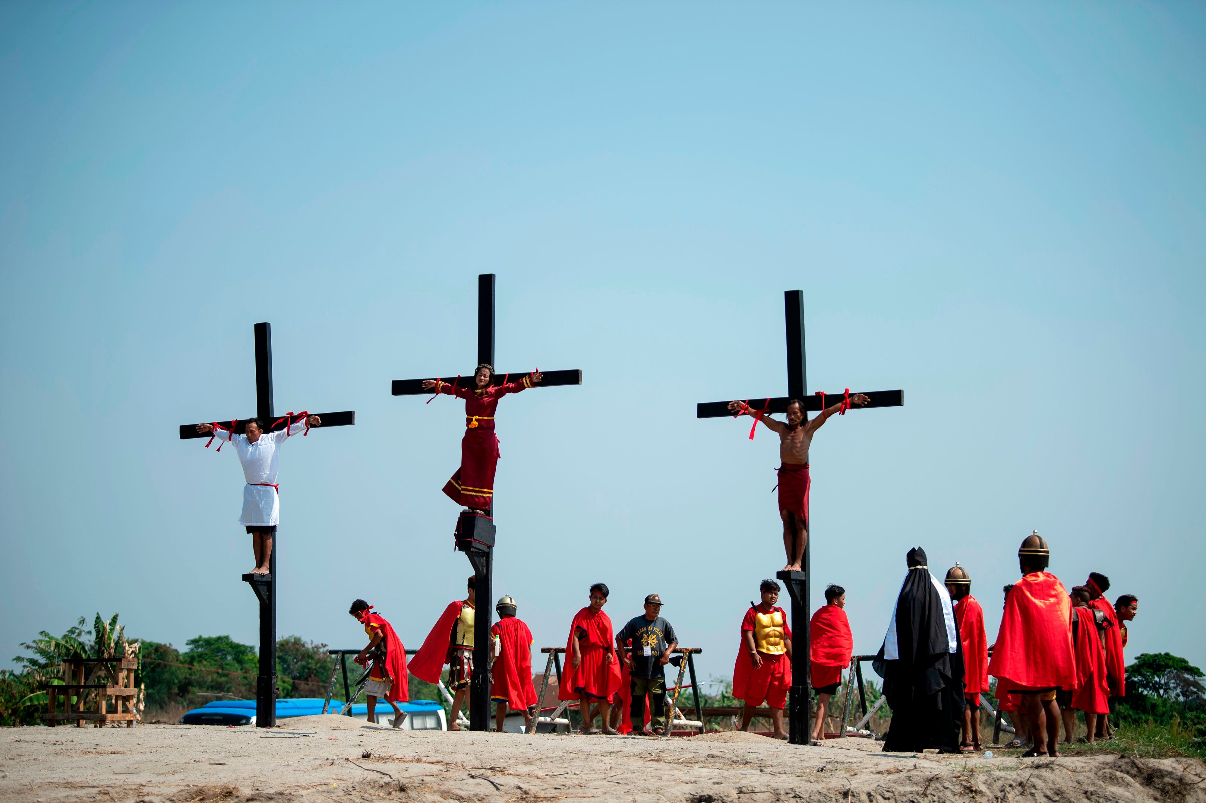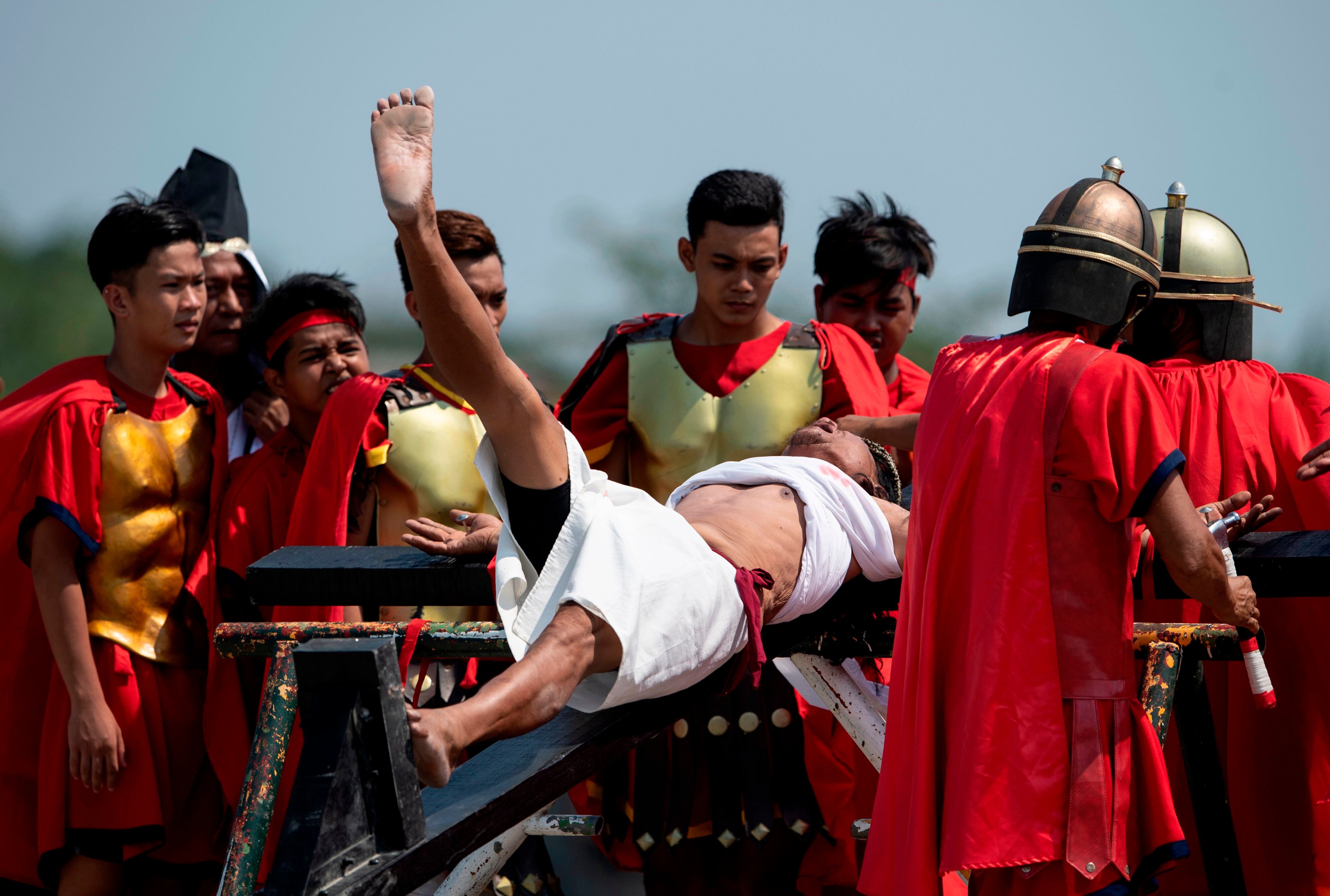 Los actos de autoflagelación y las crucifixiones se repiten cada año en este país mayoritariamente católico, donde algunos creyentes se sienten orgullosos de ponerse en la piel de Jesucristo.