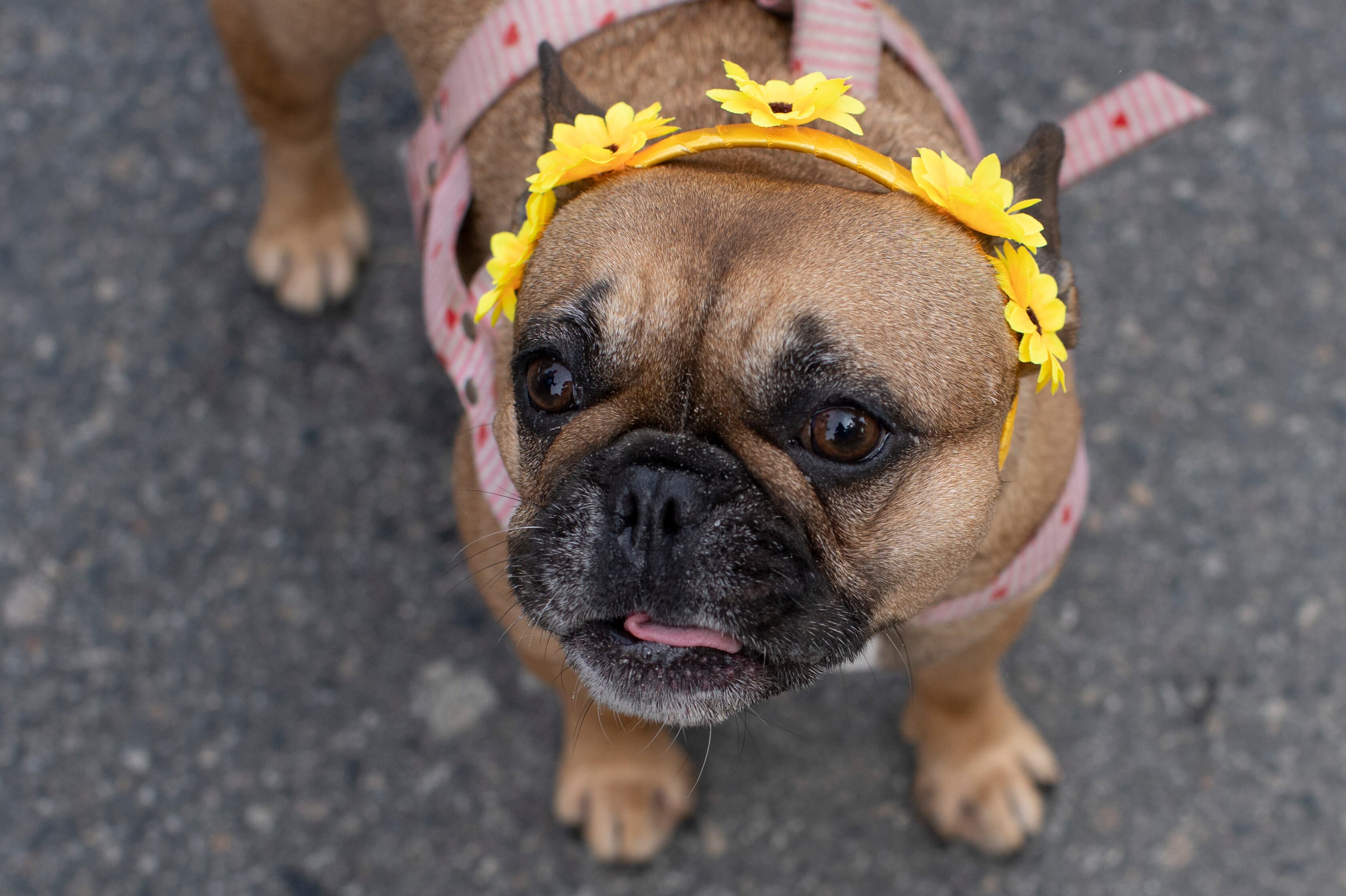 Un perro vestido de presidiario caminaba perdido, en una desorientada fuga, mientras en otro rincón, avanzaban en fila un marinero, perros enfermeros y una bulldog disfrazada de abeja.
