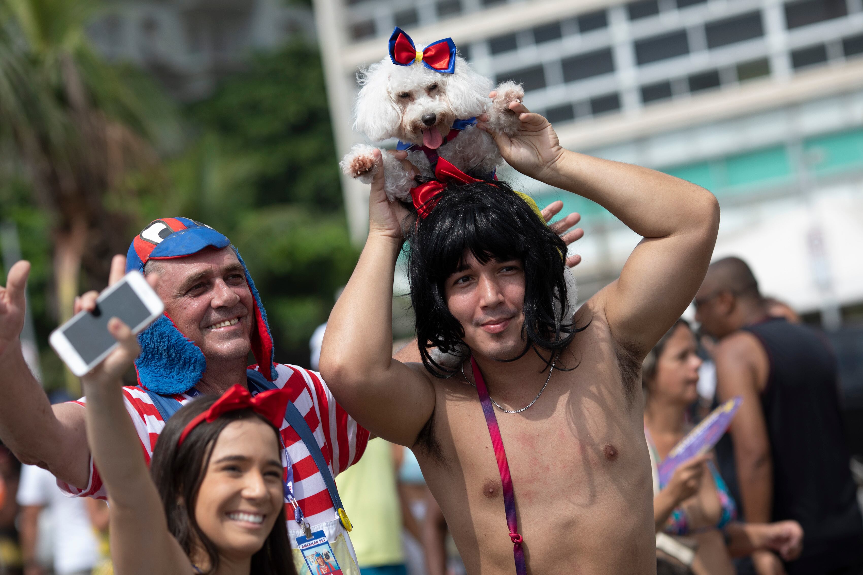 Pese a no tener el ensayo ni la coordinación propia de los bailarines de samba, ellos consiguen robarse todos los flashes y la atención de turistas y curiosos. Caminan con desparpajo, en cuatro patas, y son los más curiosos protagonistas de uno de los carnavales más populares del mundo, el de Río de Janeiro.