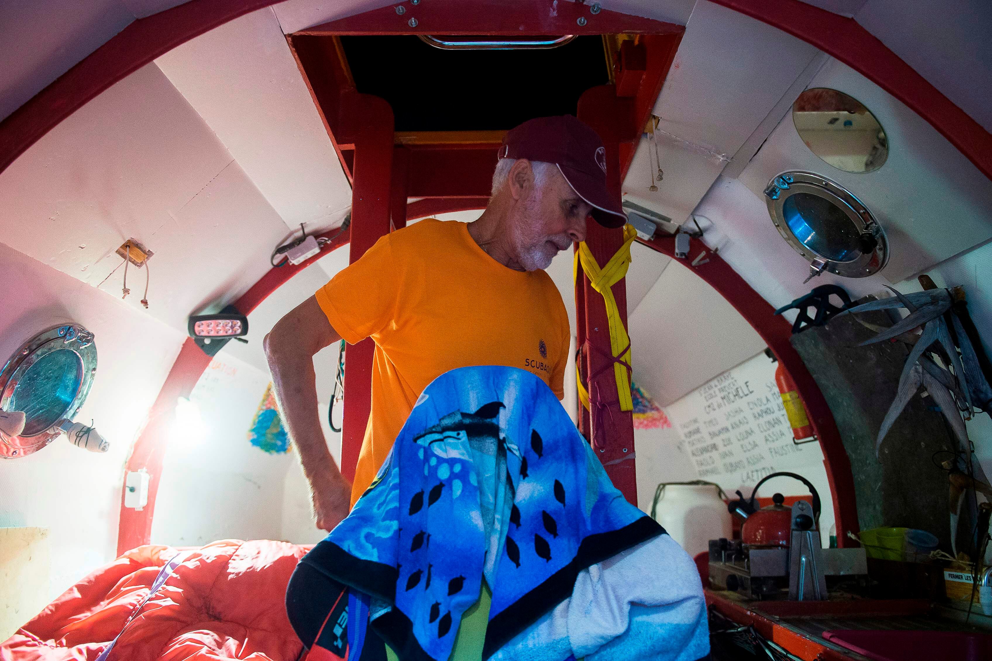Durante su viaje, el aventurero perdió 4 kilos, uno por mes. A bordo de su cápsula de 3 metros de largo, tuvo que manejarse en un espacio de vida de 6 metros cuadrados.