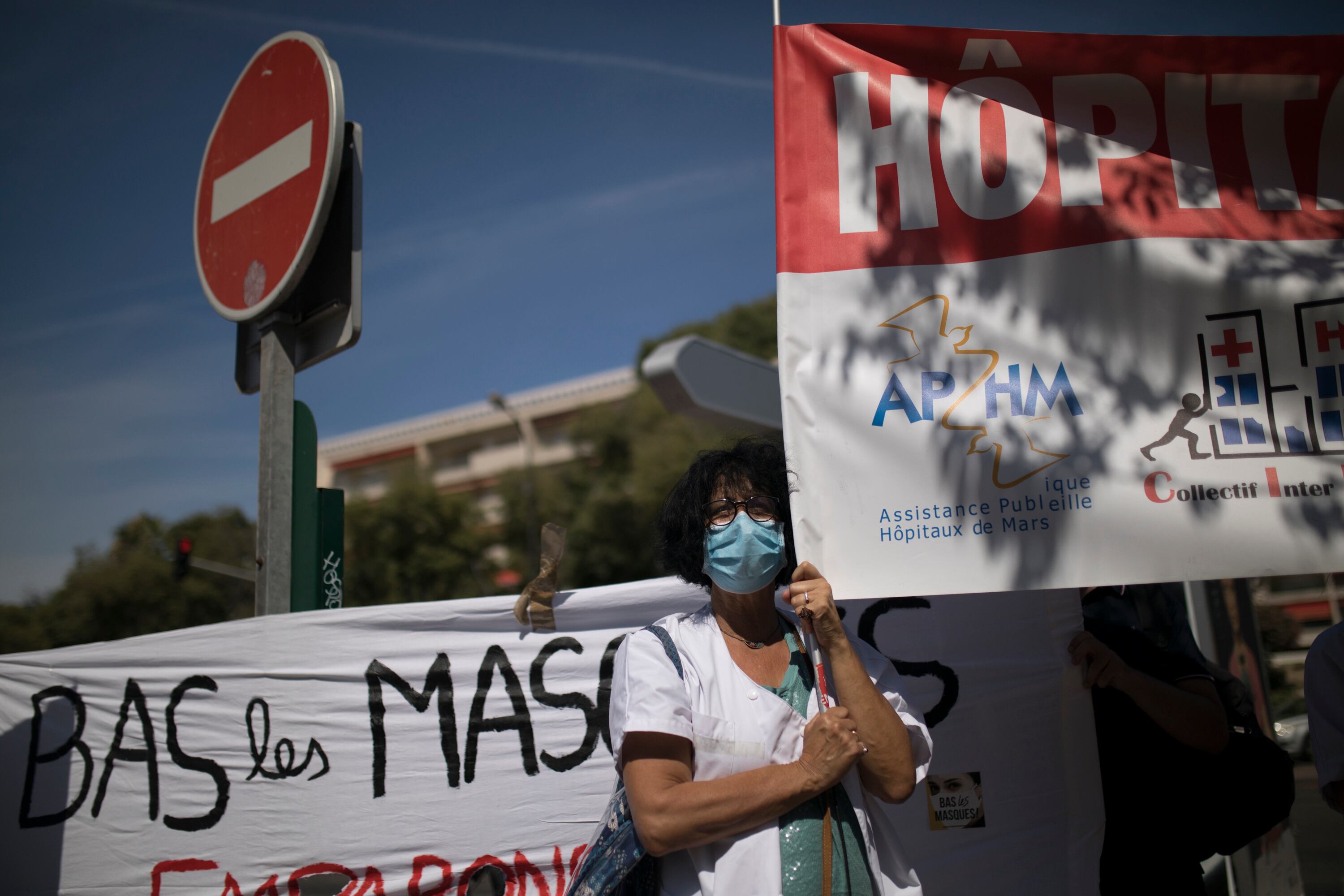 Al otro lado de la ciudad, en la Plaza de la Concordia, manifestantes llamaron la atención sobre los fallos de Francia durante la pandemia.