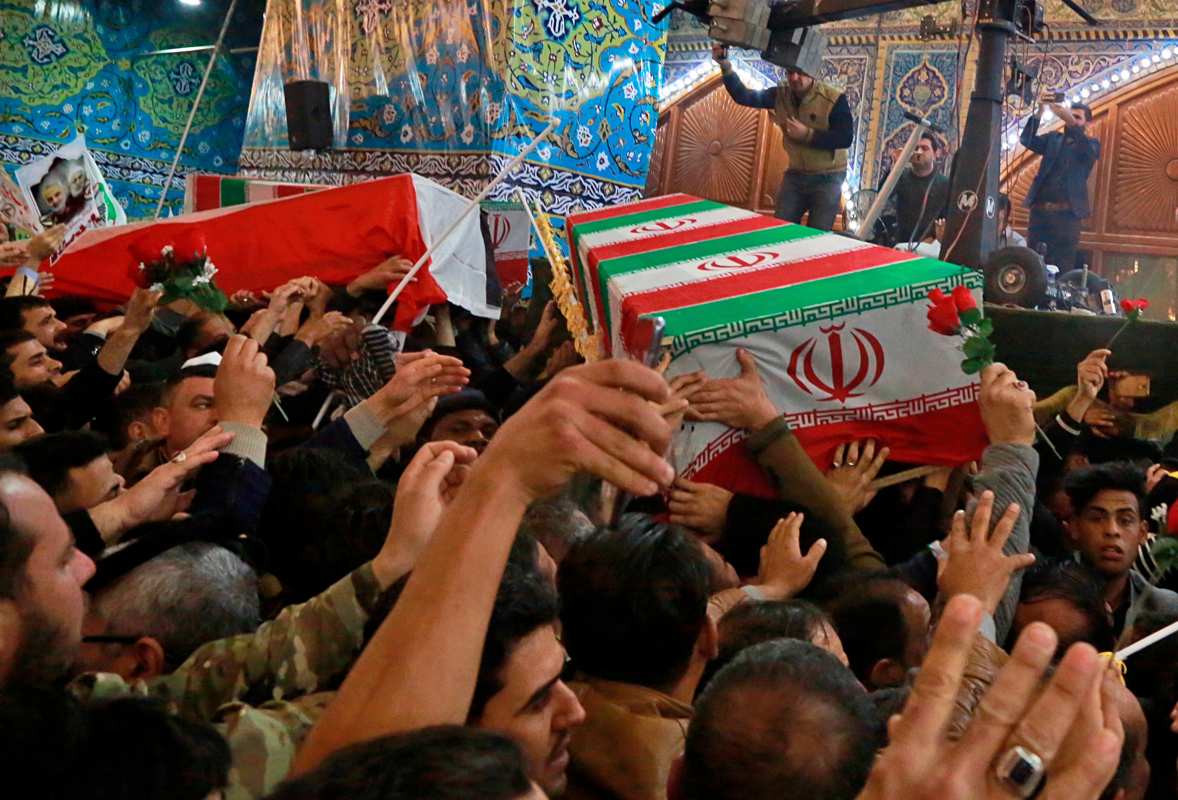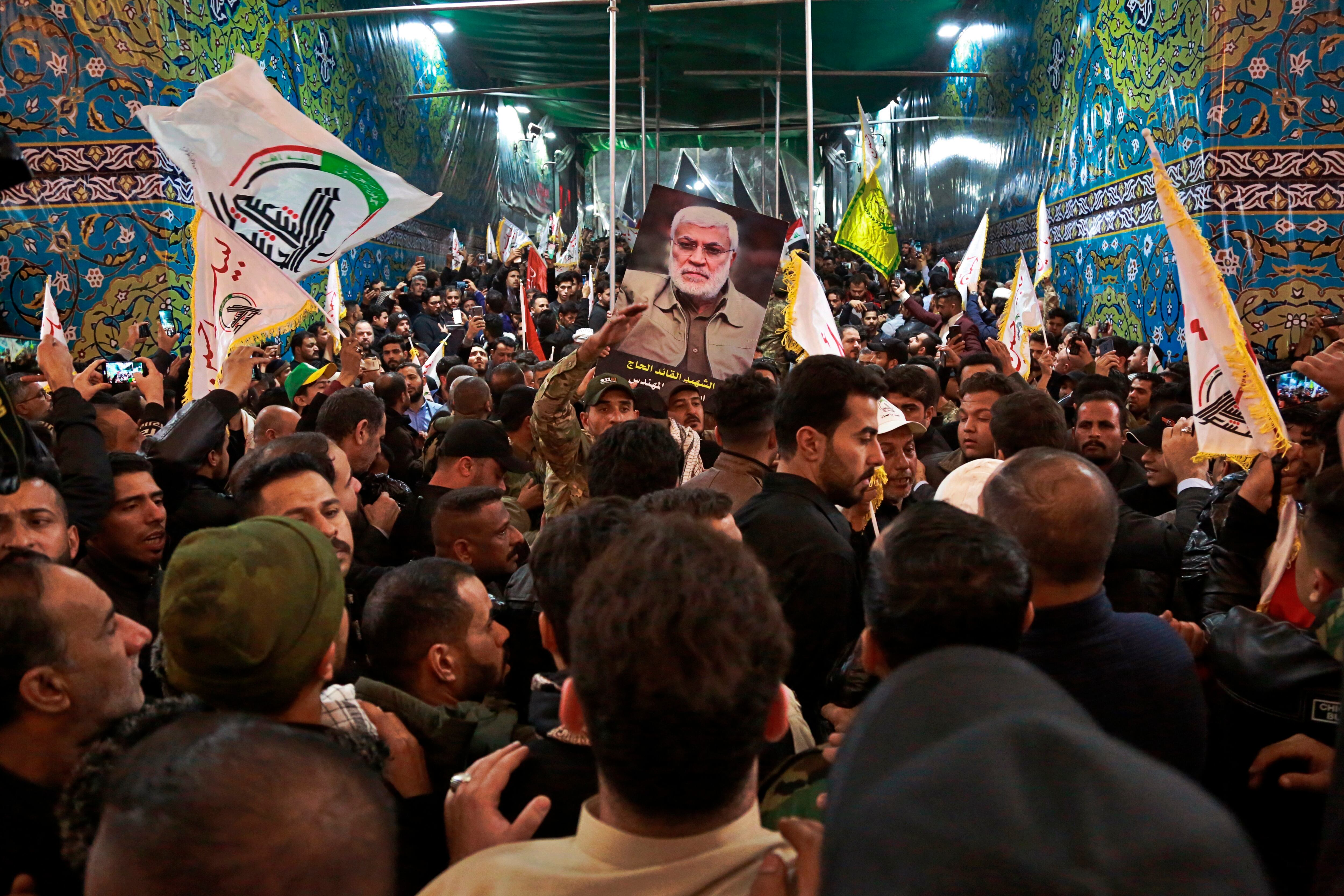 Los asistentes al funeral, en su mayoría hombres con uniforme militar negro, portaban banderas de Irak y de las milicias respaldadas por Teherán, que eran extremadamente leales a Soleimani. También lloraban la muerte de Abu Mahdi al-Muhandis, un destacado comandante miliciano iraquí que fue víctima del mismo operativo.