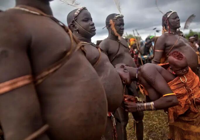 Muy cerca a ellos, existe otra tribu ancestral de seminómadas llamada Bondi, quienes premian al miembro más gordito de su población, lo coronan y este puede elegir a la mujer con la que se casará.