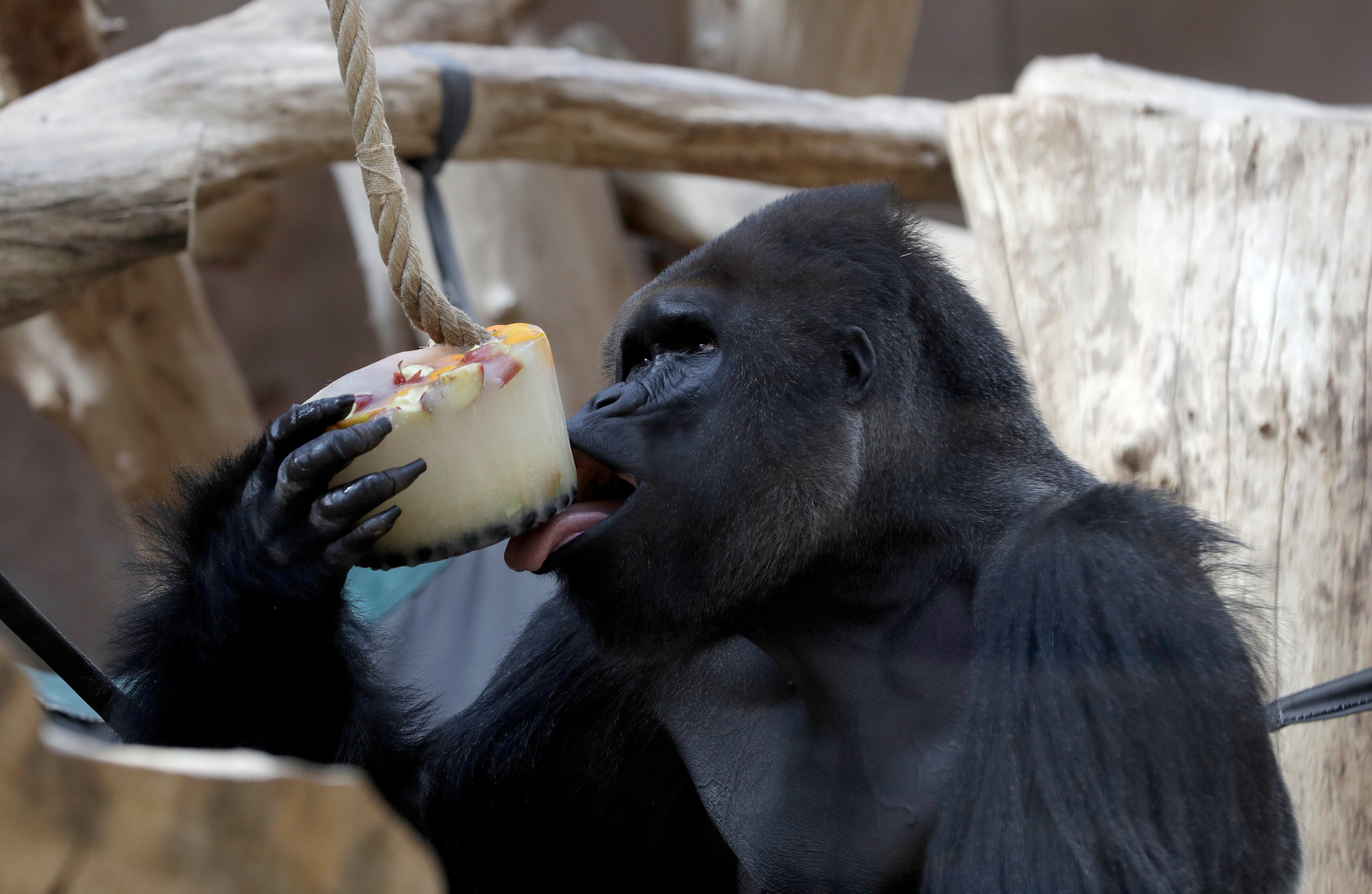 Un ejemplo son los gorilas del zoológico de Praga, República Checa, que se mantienen frescos comiendo helados y fruta congelada.
