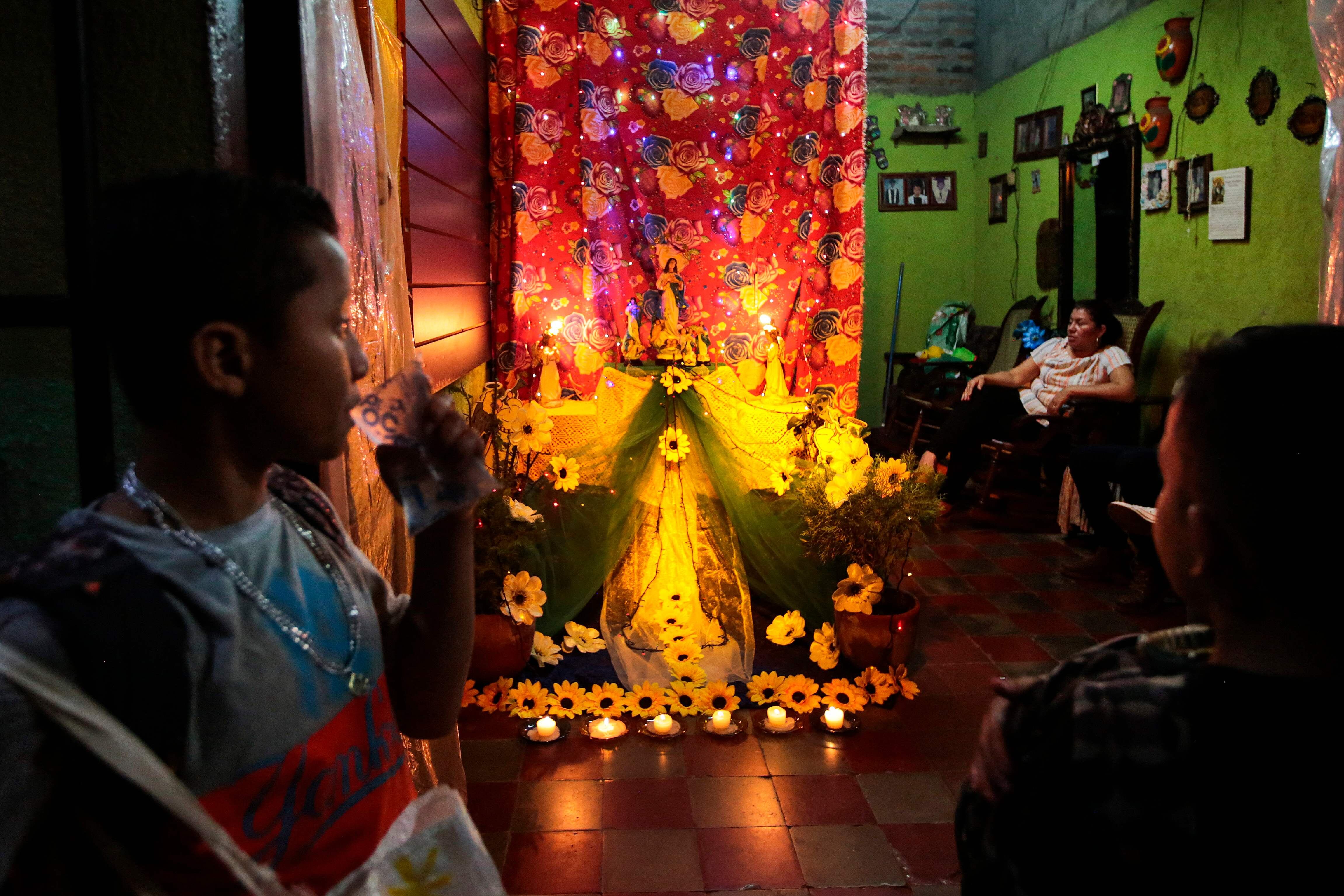 Yamilet Sandino, de 87 años del barrio indígena Sutiaba, dijo a la AFP que abrió su altar en su humilde vivienda de dos cuartos con una imagen que su familia guarda desde hace 180 años.