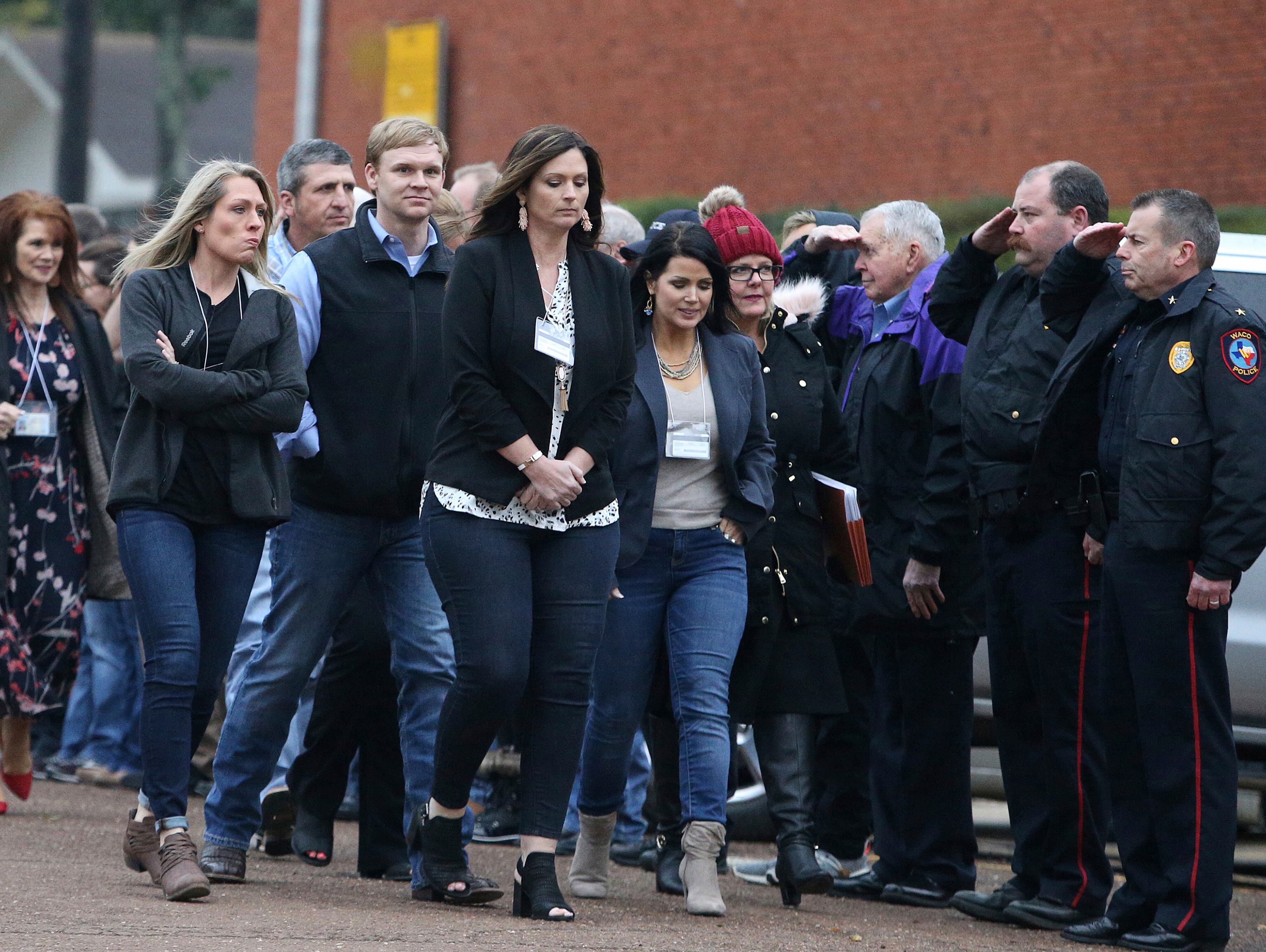 En ese momento, su hijo, un amigo y la nuera, altamente conmovidos, empezaron a arrojar puñetazos y puntapiés hacia otros testigos. Los agentes penitenciarios intervinieron y finalmente los arrastraron a un patio, donde esposaron a los hombres y los arrestaron bajo el cargo de resistencia.