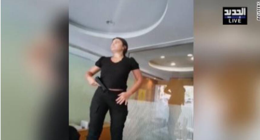 La mujer, identificada como Sally Hafez, llevaba una pistola y estaba acompañada por un grupo que se llama “Depositors Outcry”, conocidos porque piden la liberación de los depósitos congelados en los bancos libaneses.
