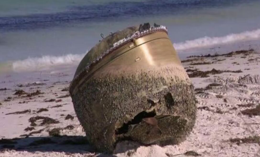El objeto de metal gigante fue encontrado por un grupo de personas del lugar en la playa de Green Head, unos 250 km al norte de Perth, capital del mayor estado de Australia.