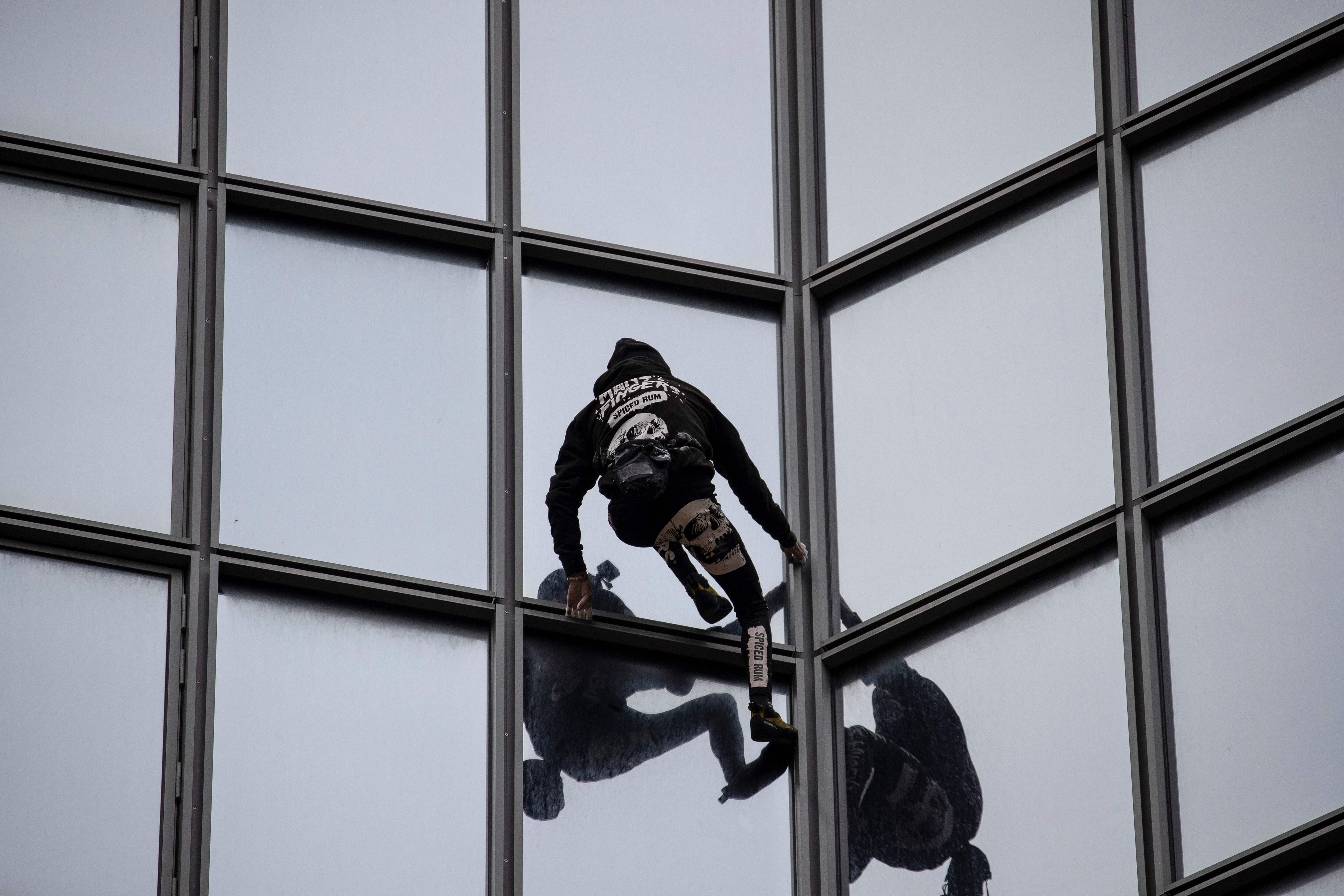 En 2015, escaló la torre Engie, también en La Defense, para hacer un llamado en pos de un sistema bancario más transparente.